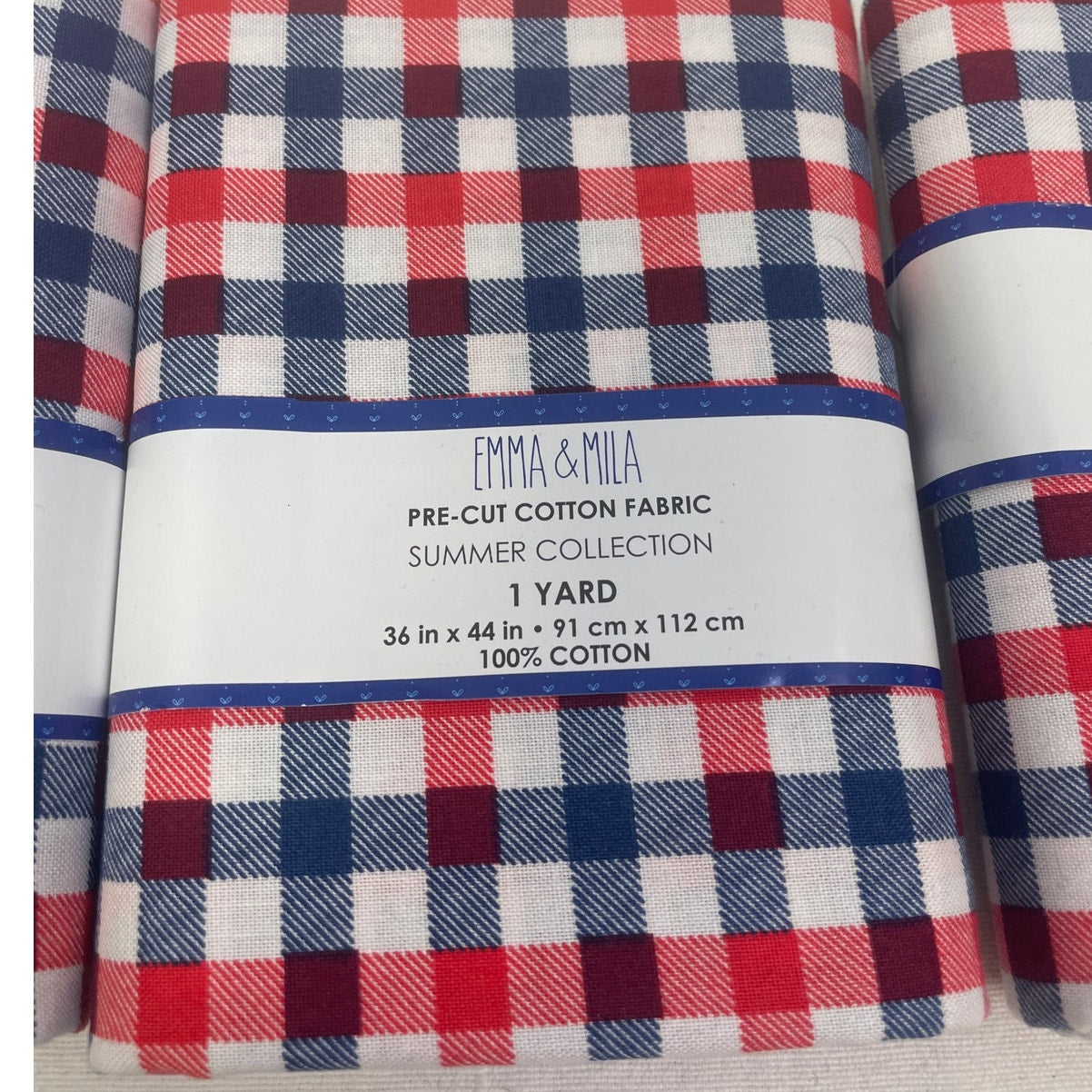 1 YD New Emma & Mila 36" X 44" USA Red White Blue Gingham Quilting Cotton Fabric