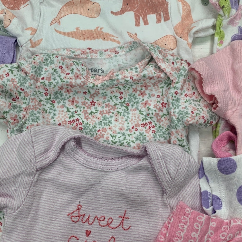 10 Baby Girls 3-6 Months Short Sleeve One Piece Snap Shut Sleepers Clothes Lot
