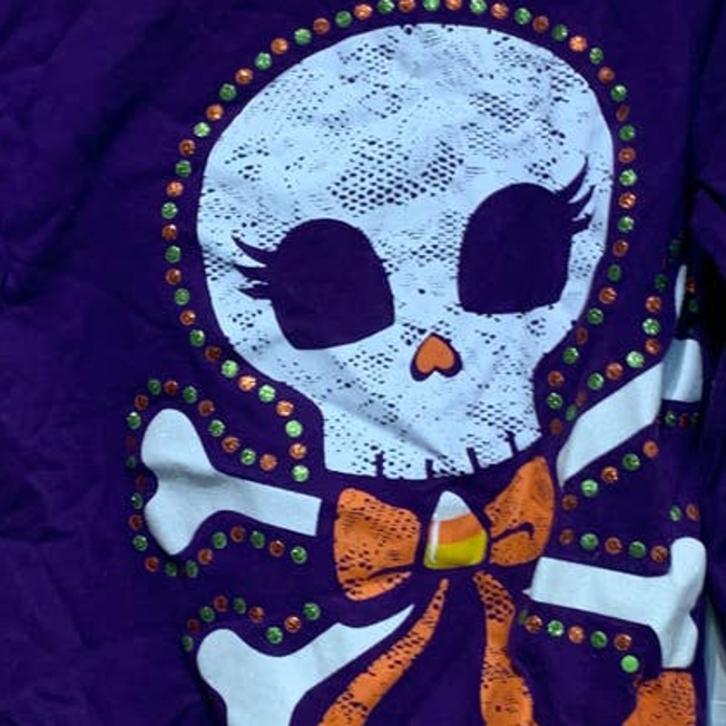 1989 Childrens Place L 10/12 Girls Halloween Skeleton Long Sleeve Cotton Tee
