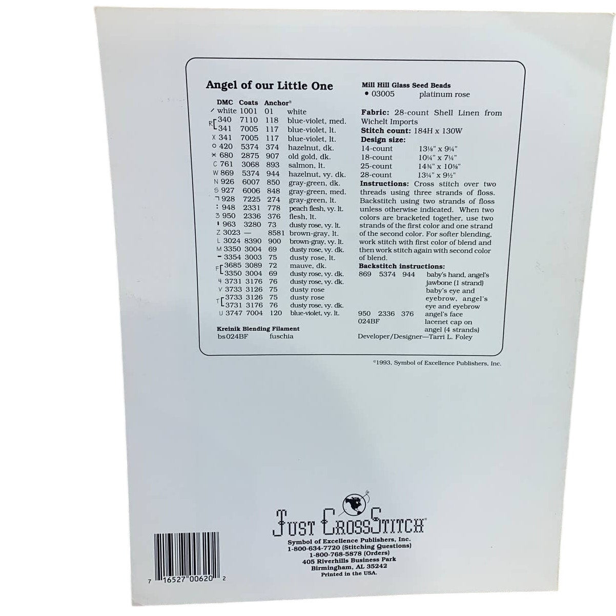 1993 Just CrossStitch #620 Angel of Our Little Ones Counted Cross Stitch Pattern