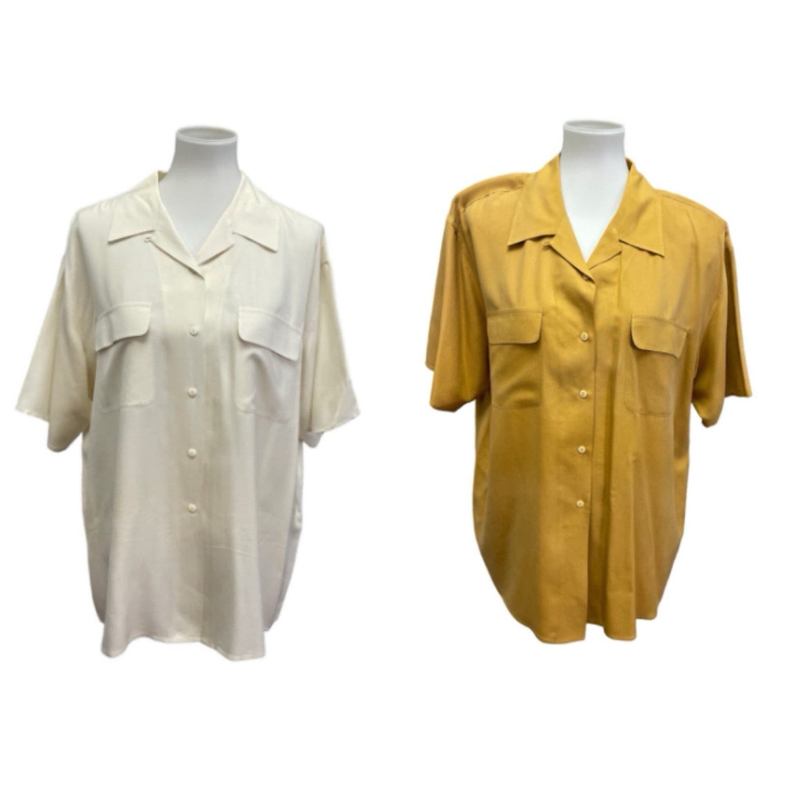 2 Anna and Frank Woman Plus Size 1X 100% Silk Short Sleeve Button Down Blouses
