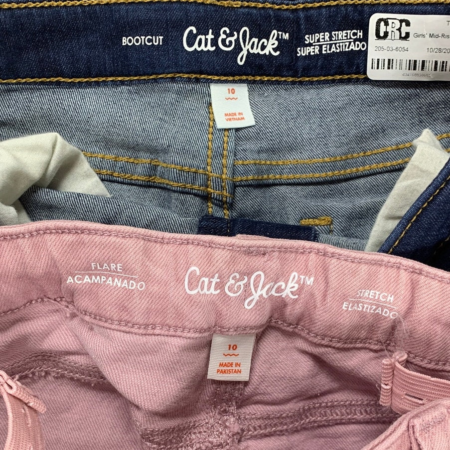 2 Cat & Jack Girls Size 10 Stretch Flare Boot Cut Adjustable Waist Denim Jeans