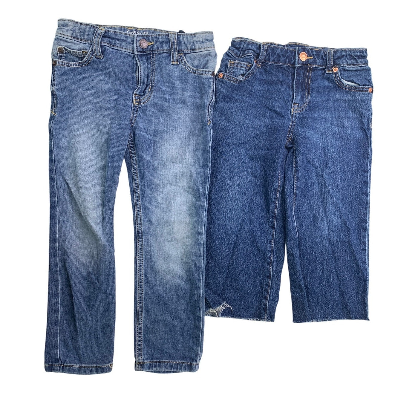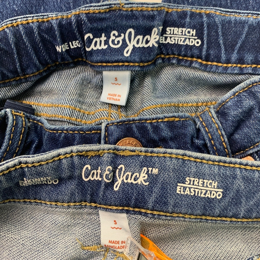2 Cat & Jack Girls Size 5 Skinny Wide Leg Stretch Adjustable Waist Denim Jeans