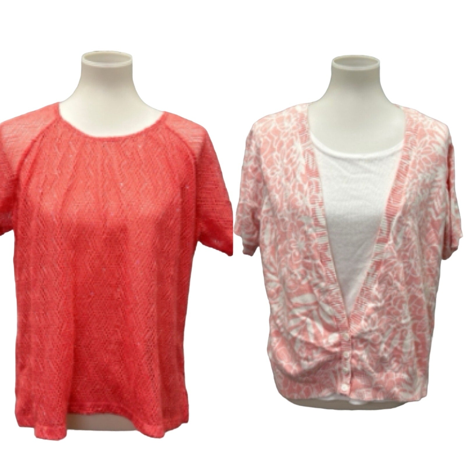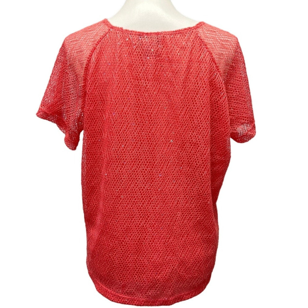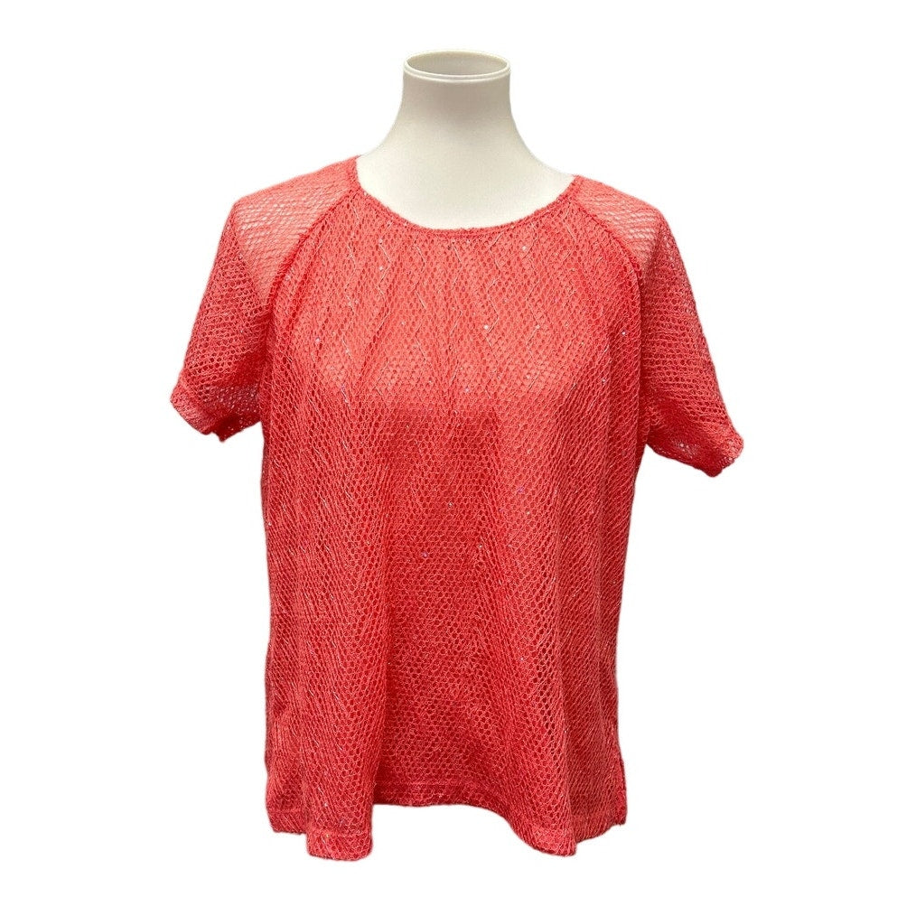 2 Cathy Daniels Womens XL Short Sleeve Orange Peach PolyCotton Sweater Tops