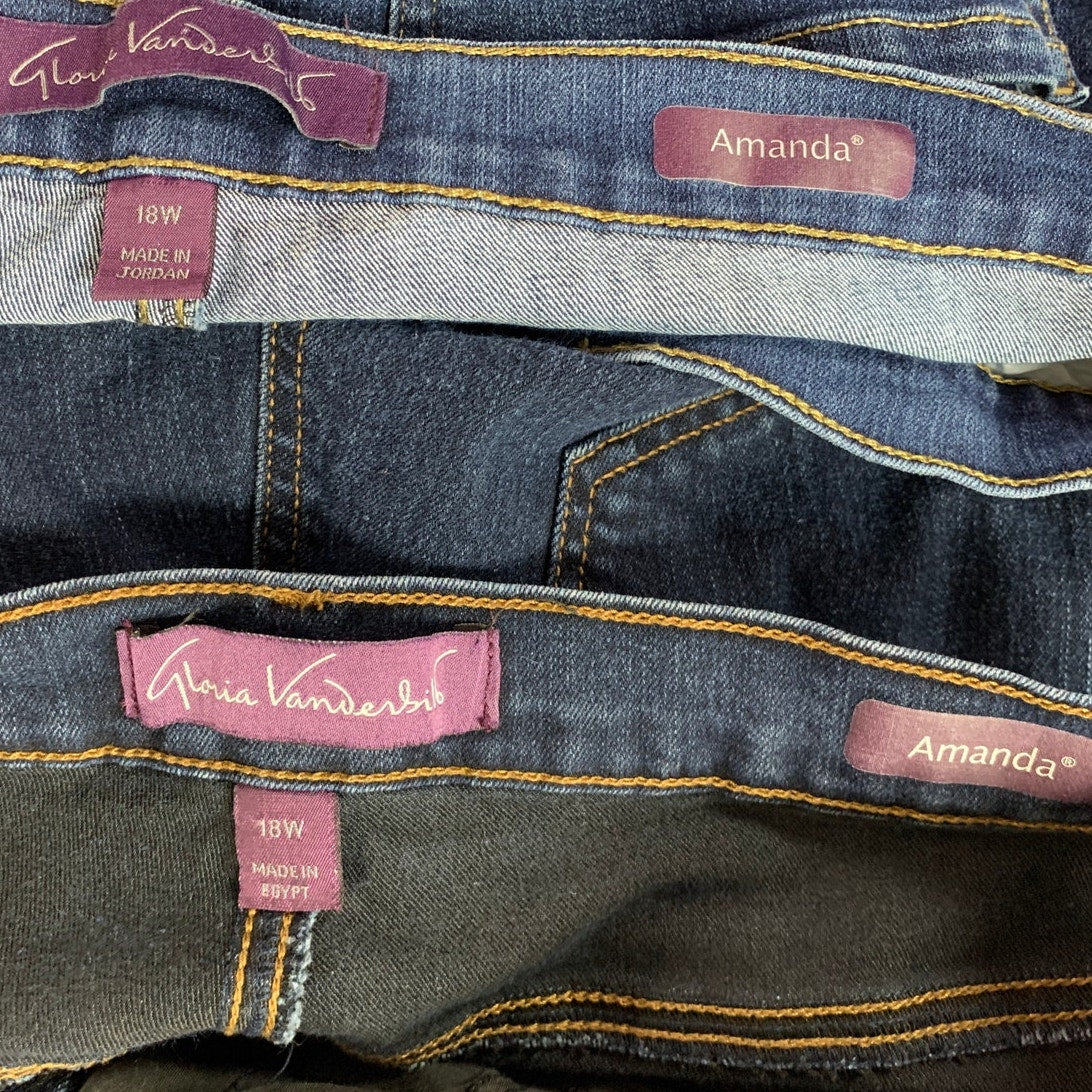 2 Gloria Vanderbilt Womens Plus Size 18W Cotton Blend Amanda Denim Blue Jeans