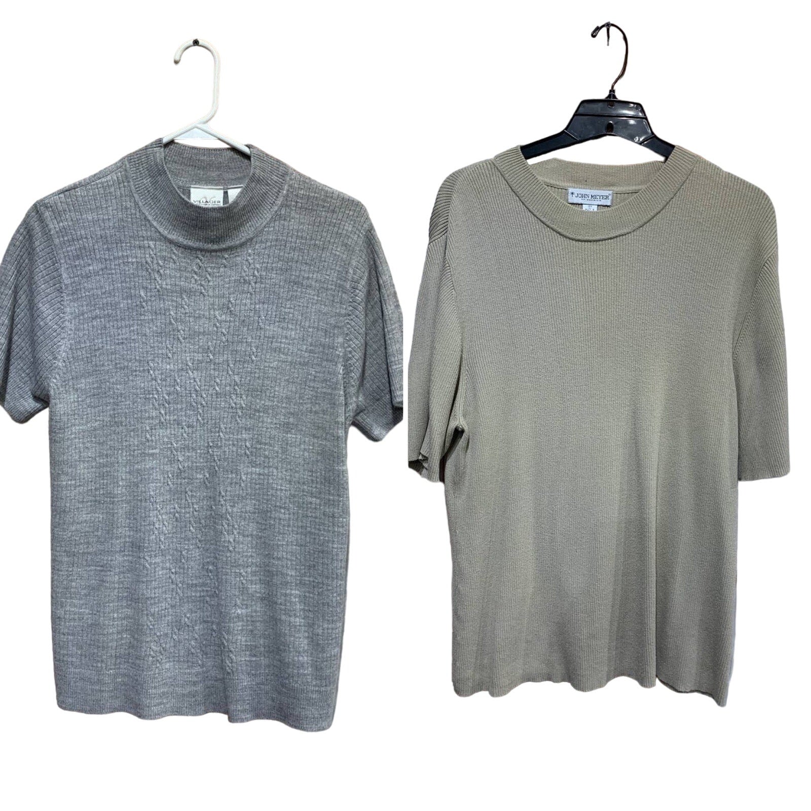 2 Liz Claiborne John Meyer Womens XL 18W Neutrals Short Sleeve Knit Sweater Lot