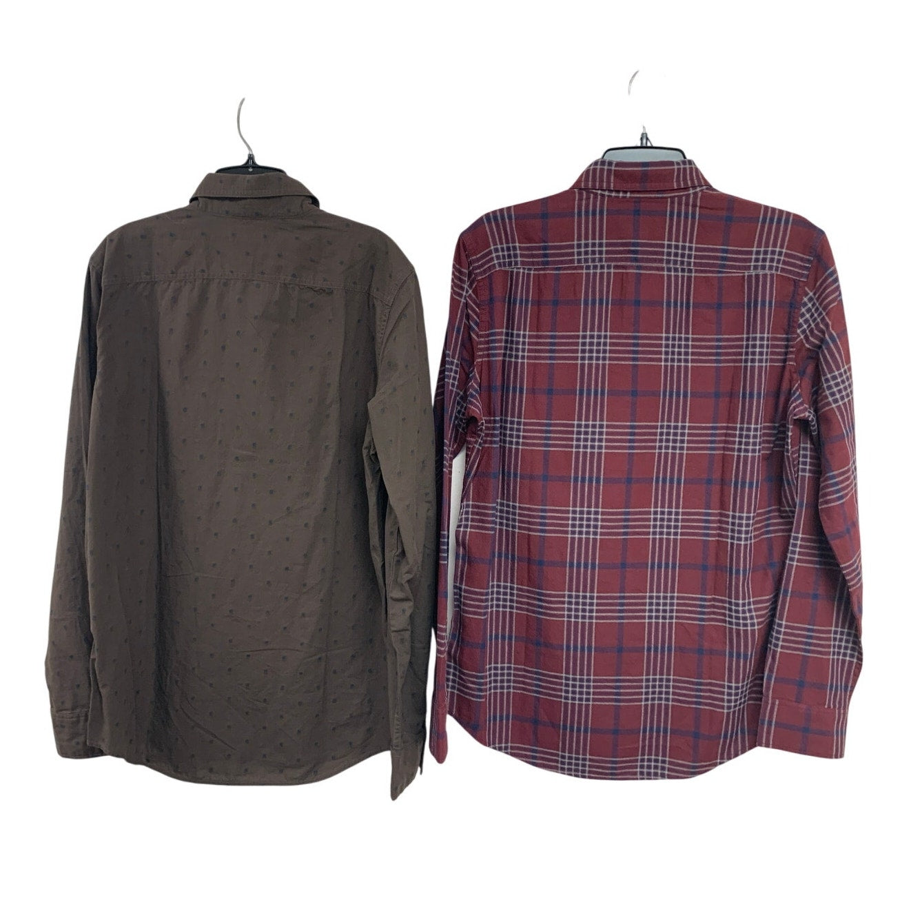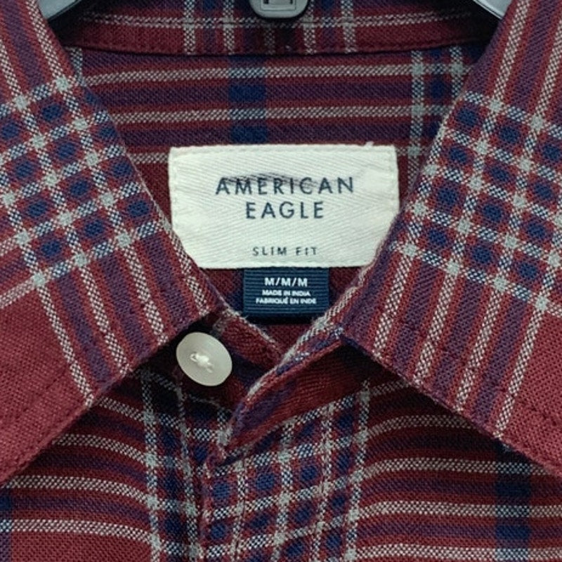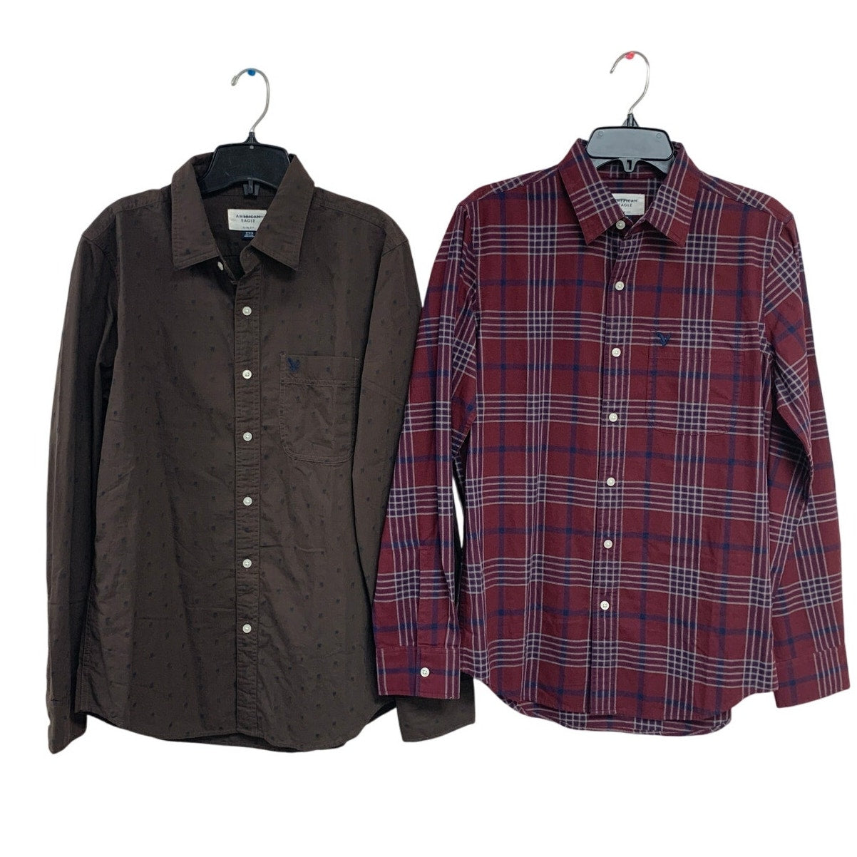 2 New American Eagle Mens Medium Slim Fit Plaid Long Sleeve Button Up Shirts