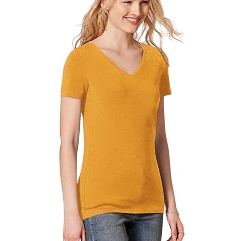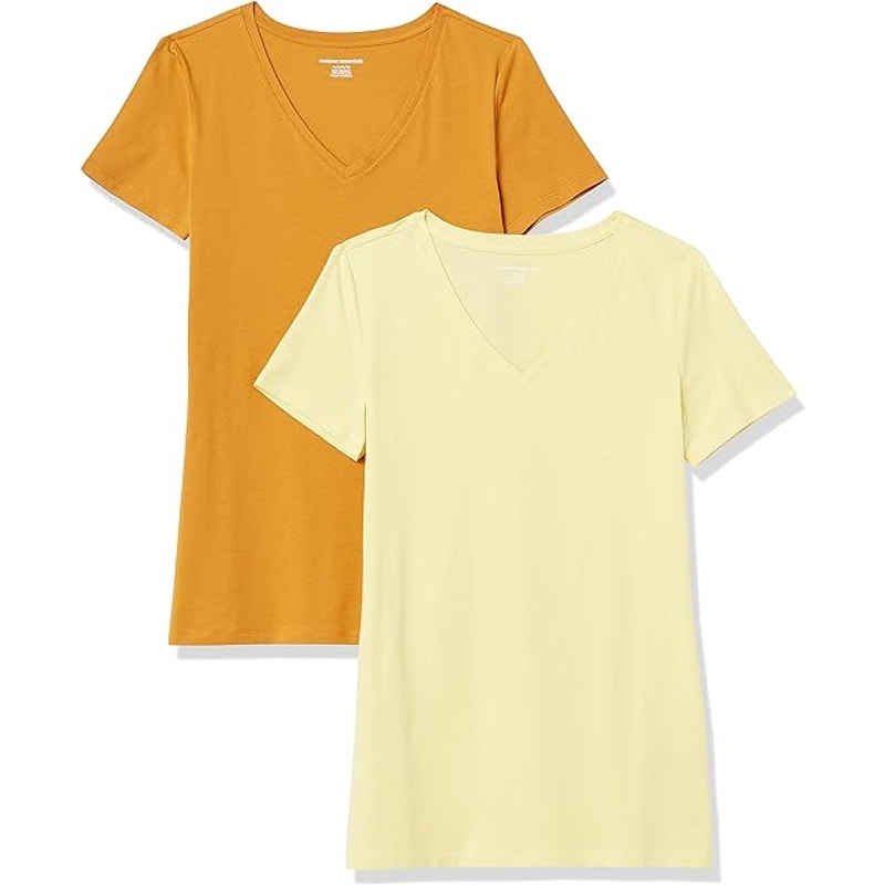 2 Pack Amazon Essentials Womens XS Yellow Short Sleeve V Neck Tee Shirts