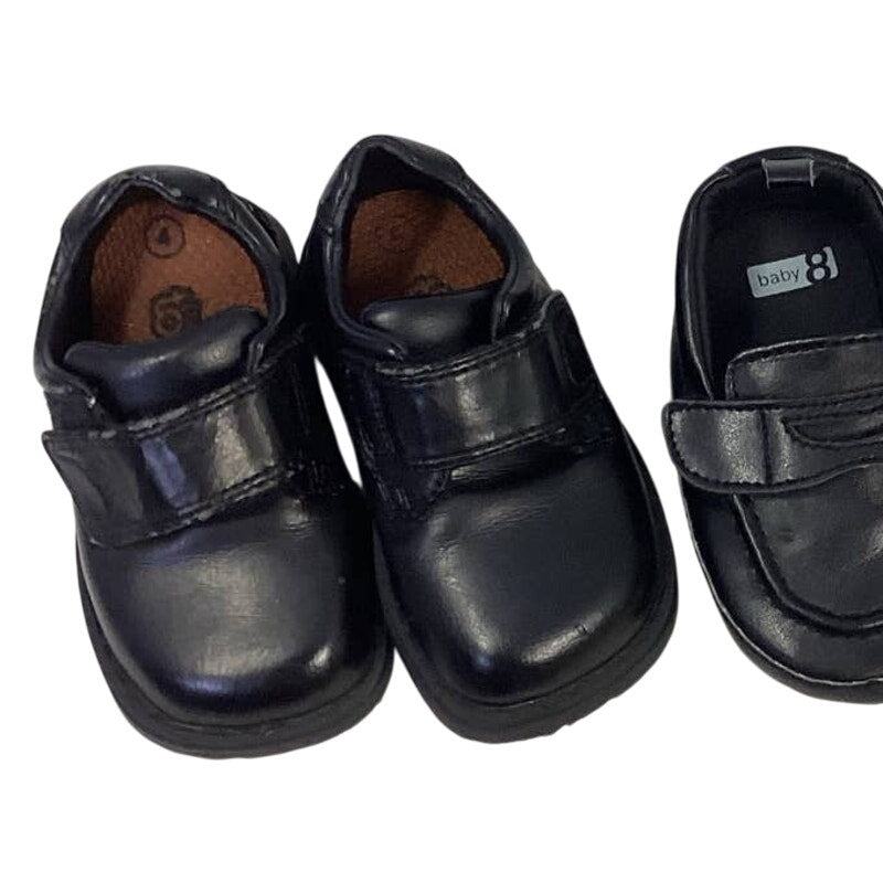2 Pairs of Baby Boy Size 4 Black Formal Shiny Faux Leather Shoes Baby 8 & Toes