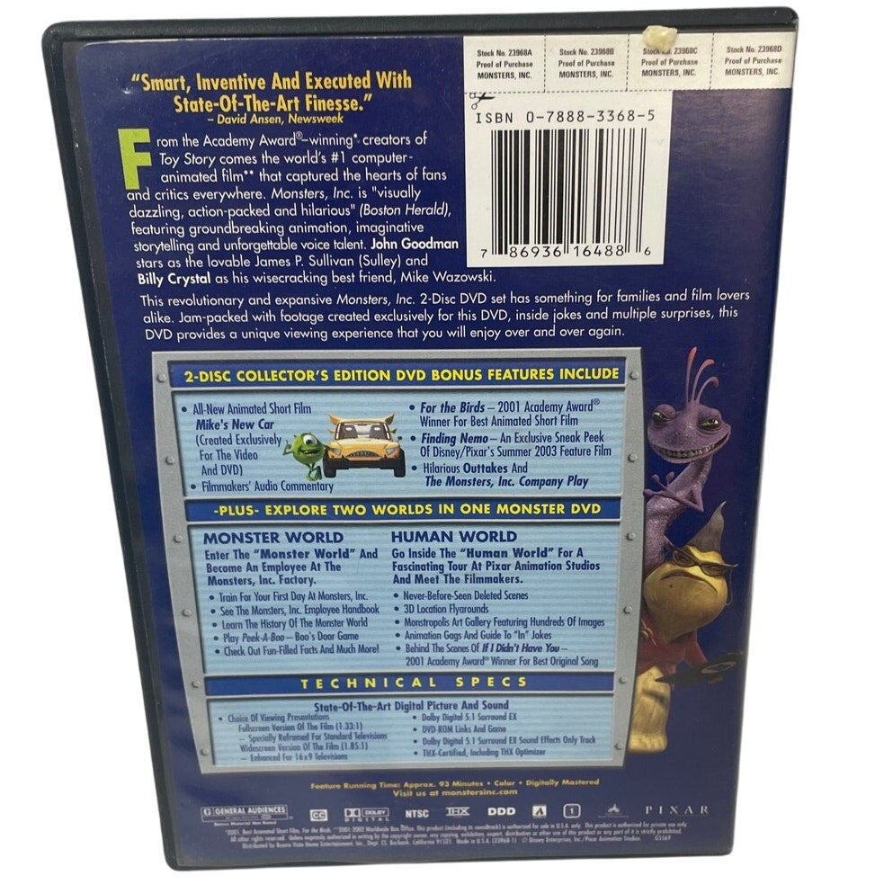2013 Disney Pixar Monsters Inc Collector's Edition 2-Disc DVD Good Condition