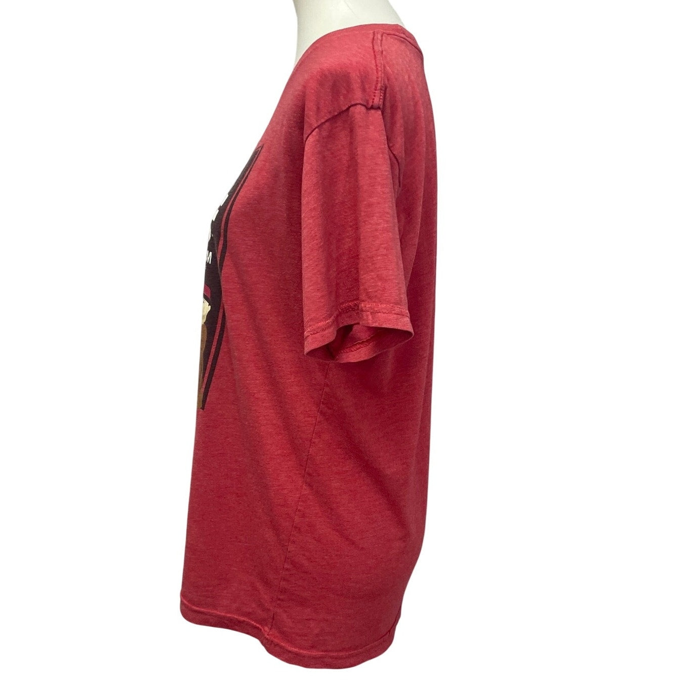 This cute tee is in good condition with some crackling in the vinyl. Size tag is faded, chest is 20" across, length is 27" so I am calling it a medium. Just awesome!