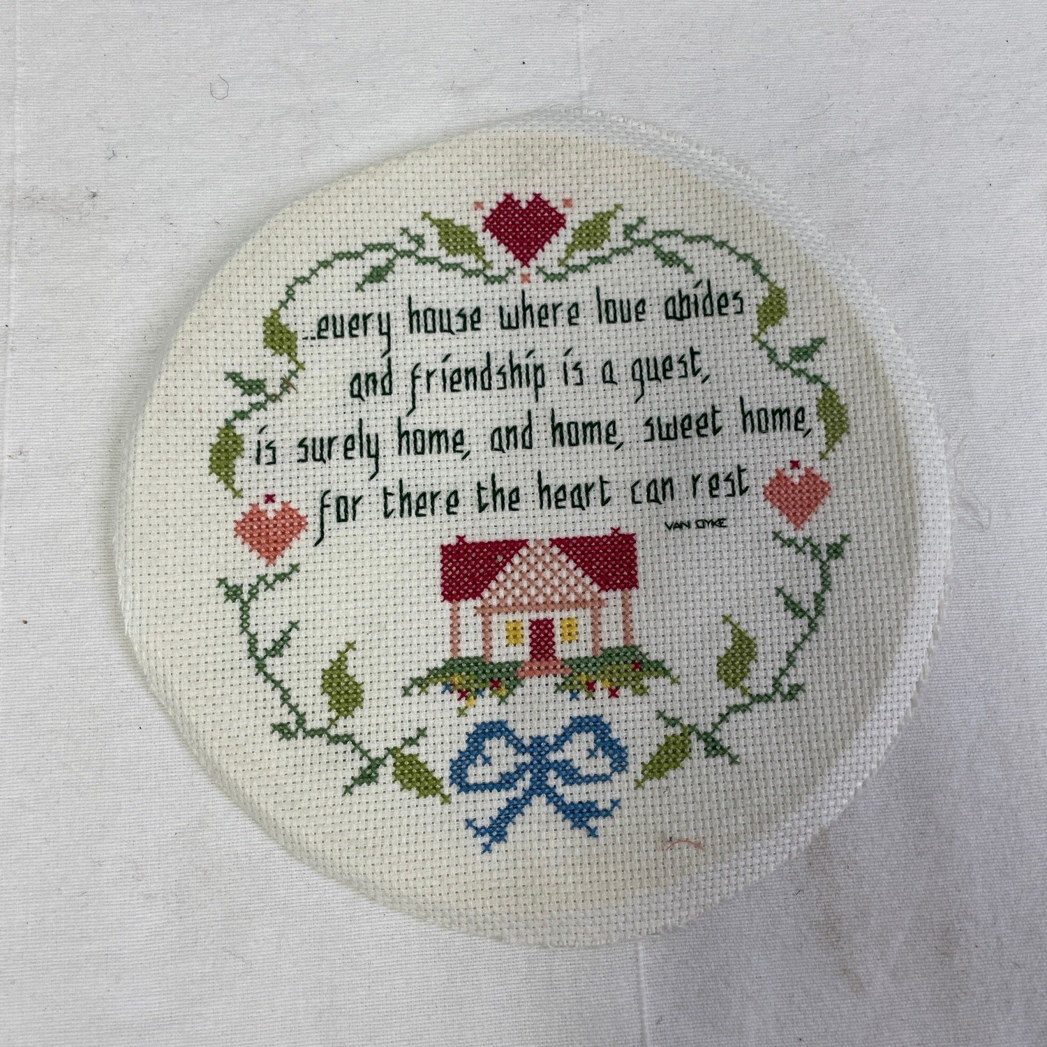 3 Handmade Vintage Counted Cross Stitch Heart Home Friends Ready to Frame Art
