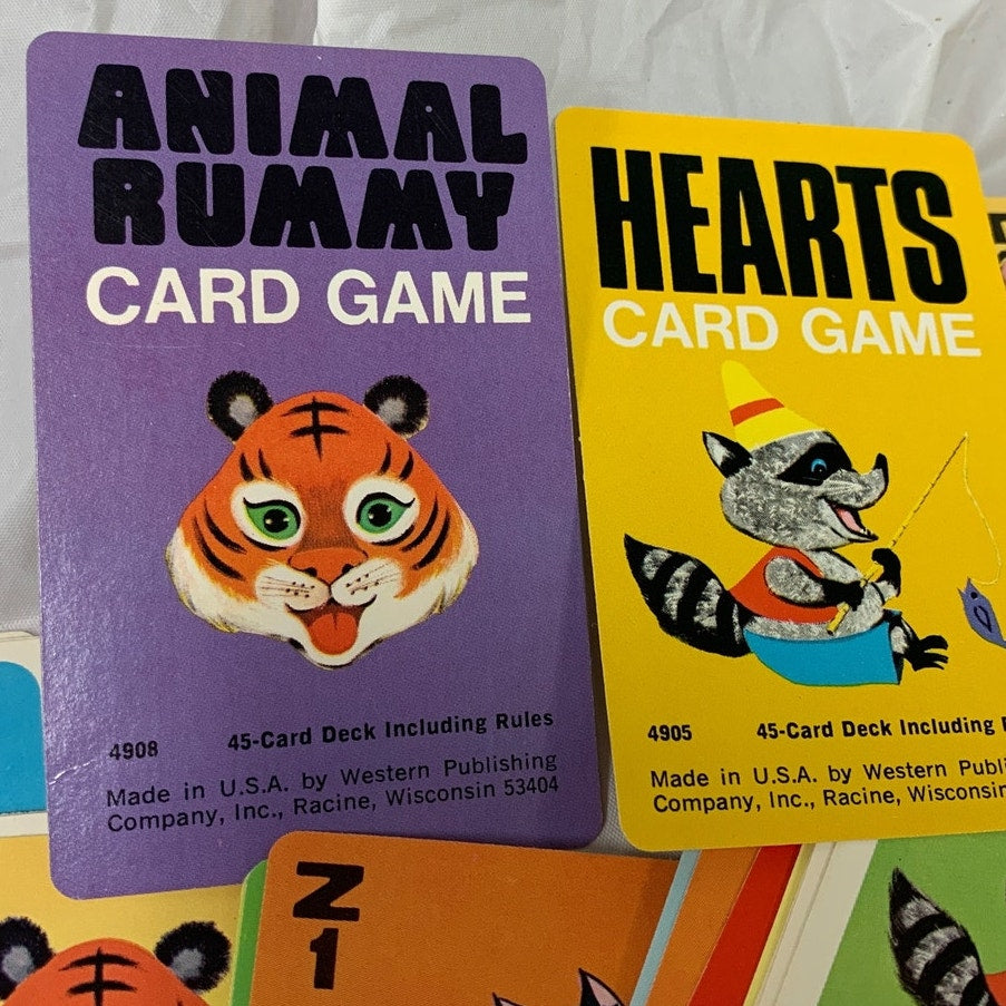 3 Vintage 1970s Kids Card Games Noah's Ark Animal Rummy Hearts Decks