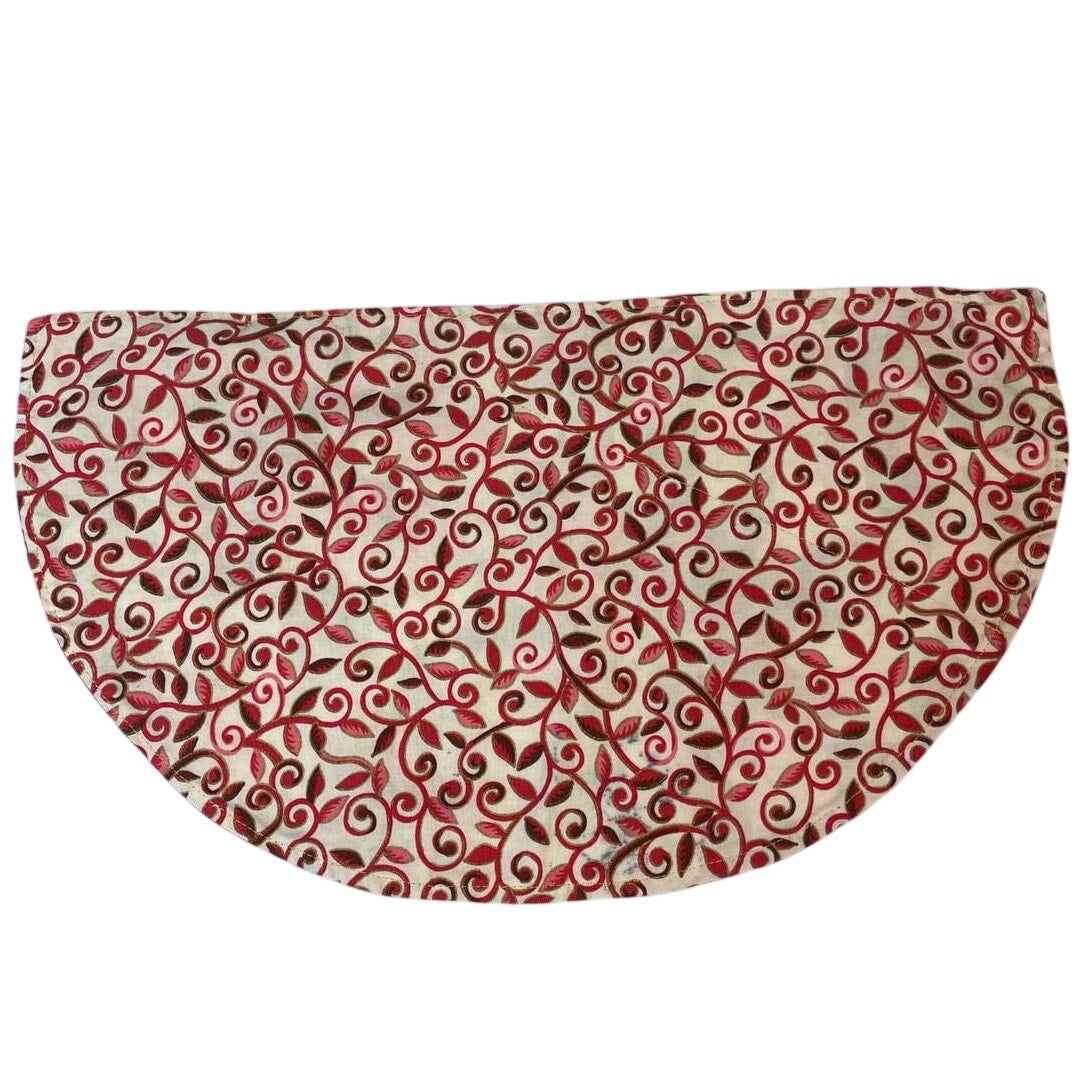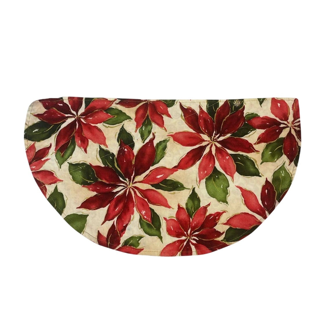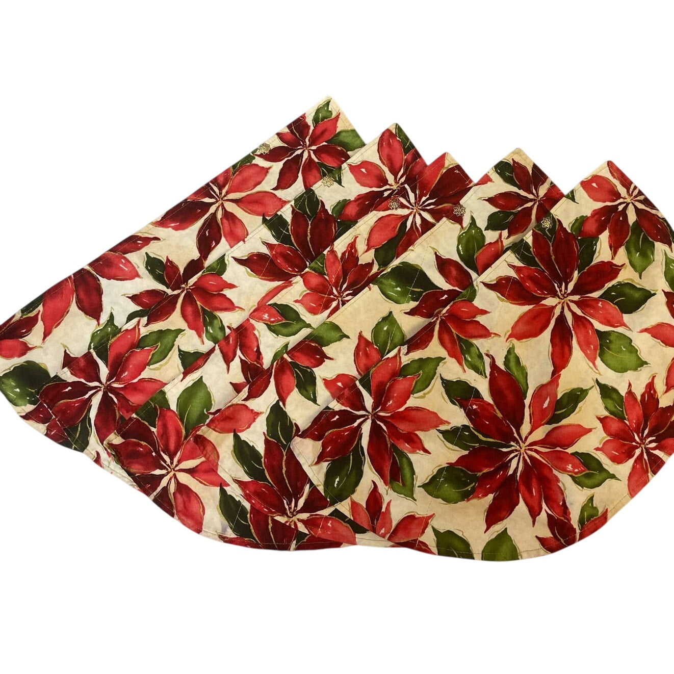 5 Handmade Half Moon Christmas Poinsettia Cotton Fabric Placemants Lace Doily