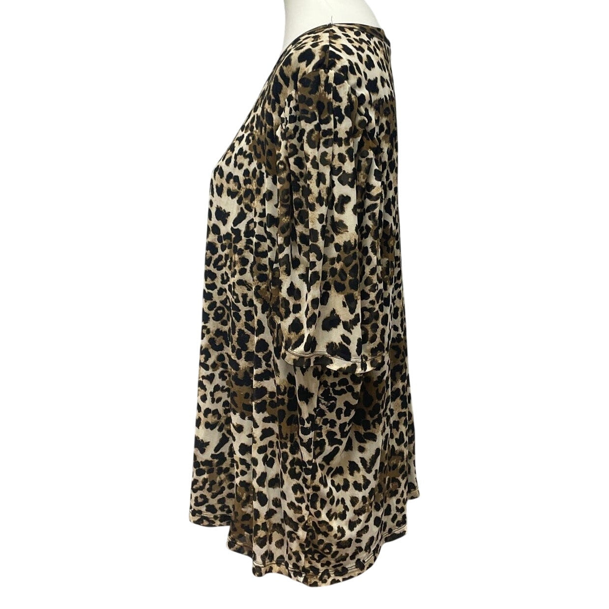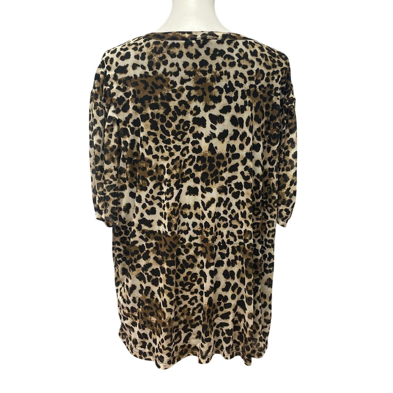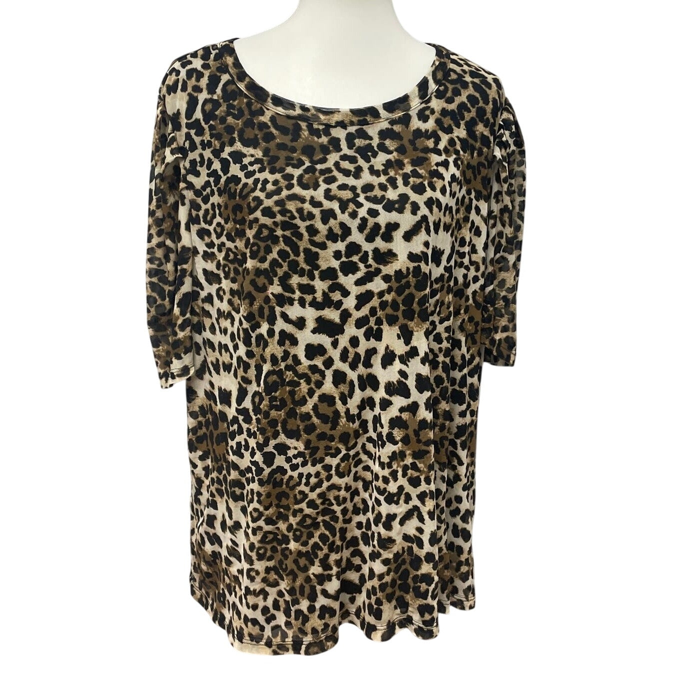 A Love Story Women 3X 3/4 Sleeve Flowy Leopard Print Scoop Neck Blouse Top