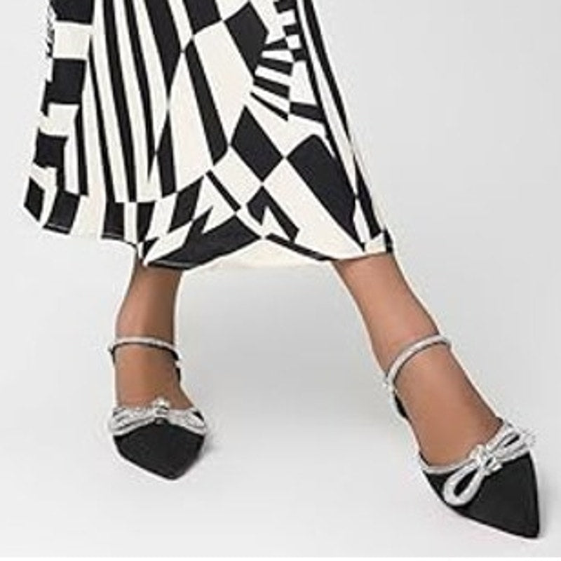 Aachcol Womens Size 10 Black Silver Closed Toe Rhinestone Bow Kitten Heels