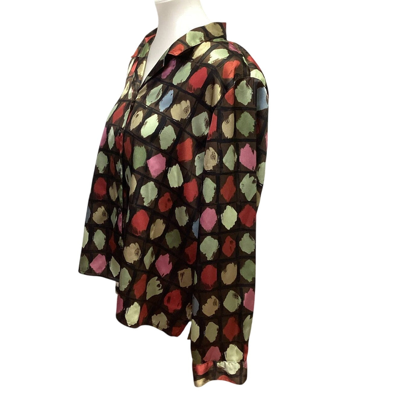 Alfred Dunner Womens 18P Petite Long Sleeve Button Down Polka Dot Silky Blouse