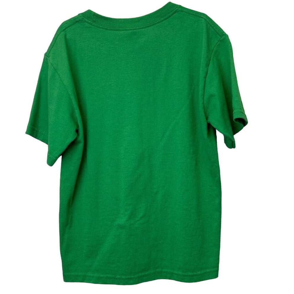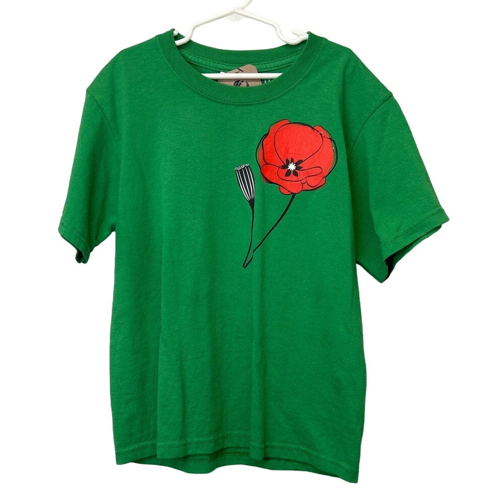 Hand Printed Upcycled Girls Medium Poppy Flower Short Sleeve Cotton Blend Tee