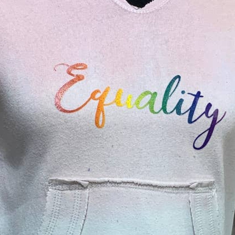Hand Printed Upcycled Girls XL Equality Rainbow Pride Hi Lo Cotton Blend Hoodie