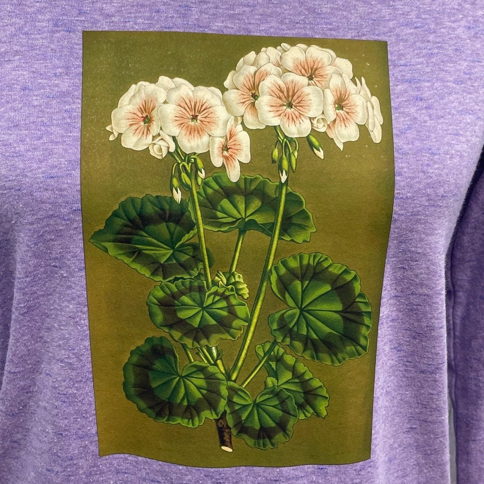 Hand Printed Upcycled Womens Medium Vintage Book Page Flower Long Sleeve Tee