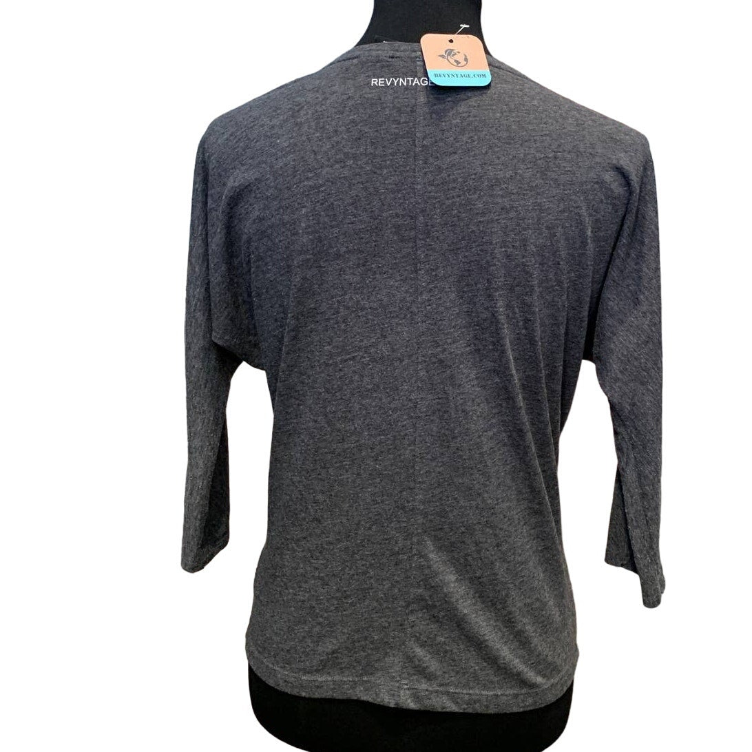 This upcycled 3/4 sleeve shirt is in excellent condition! 45% polyester, 39% cotton and 16% viscose, size XS, chest is 21" across, length is 21", so cute!