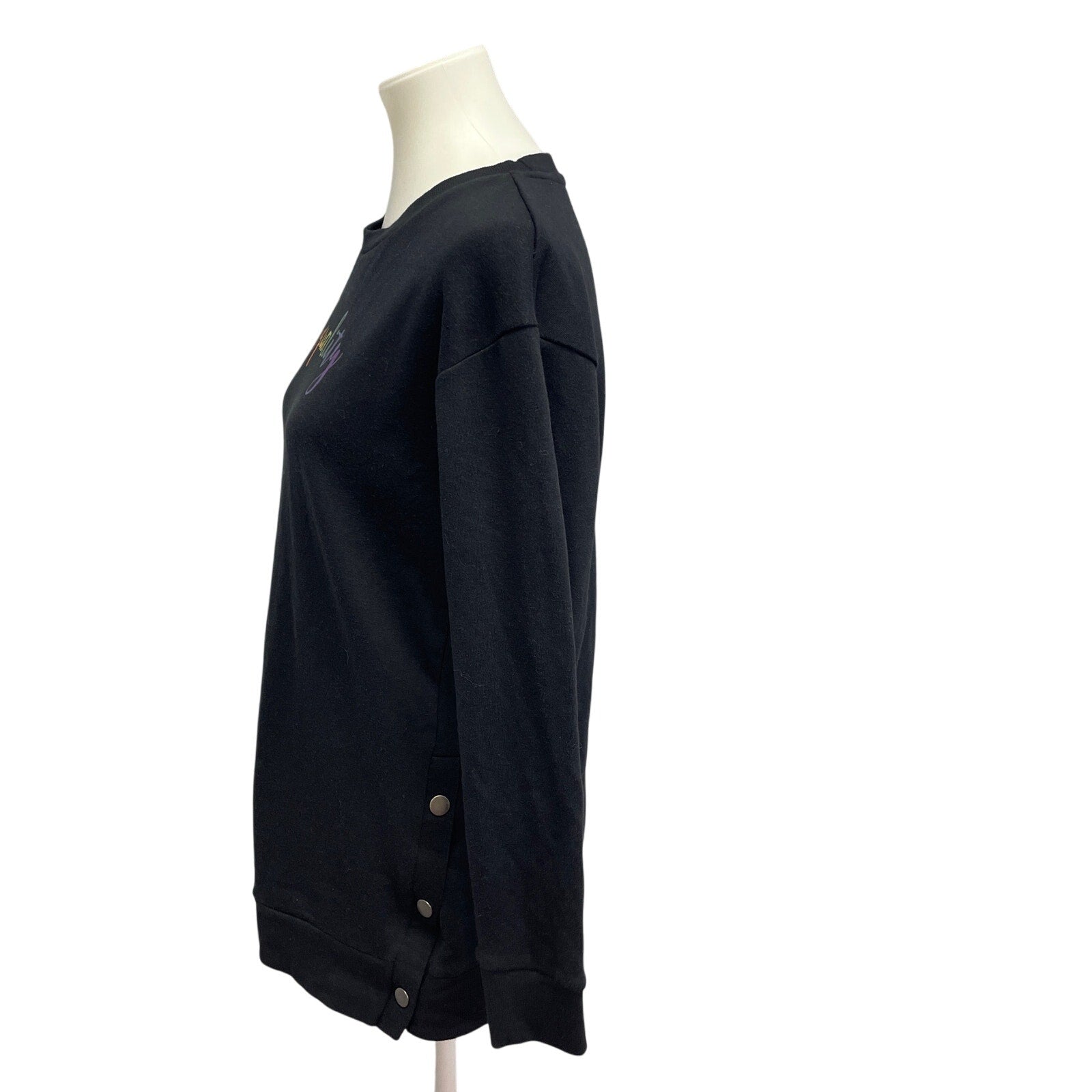 This upcycled sweatshirt is new without the tags, It is a maternity size XS and is in excellent condition! chest is 18"across, length is 24", just awesome!