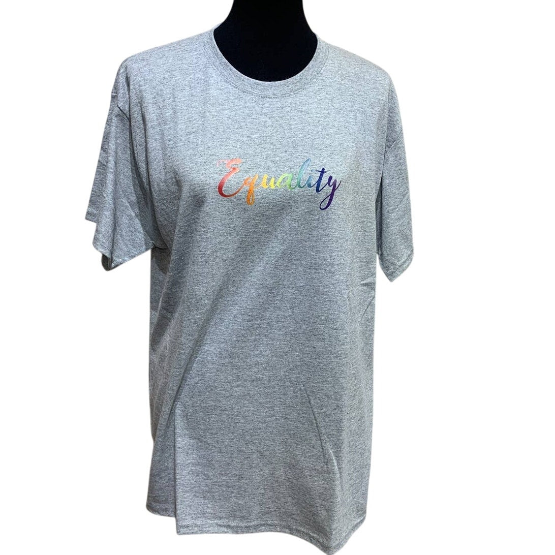 New Mens Large Hand Printed LGBTQ Gay Pride Gray Rainbow Equality Tee Shirt