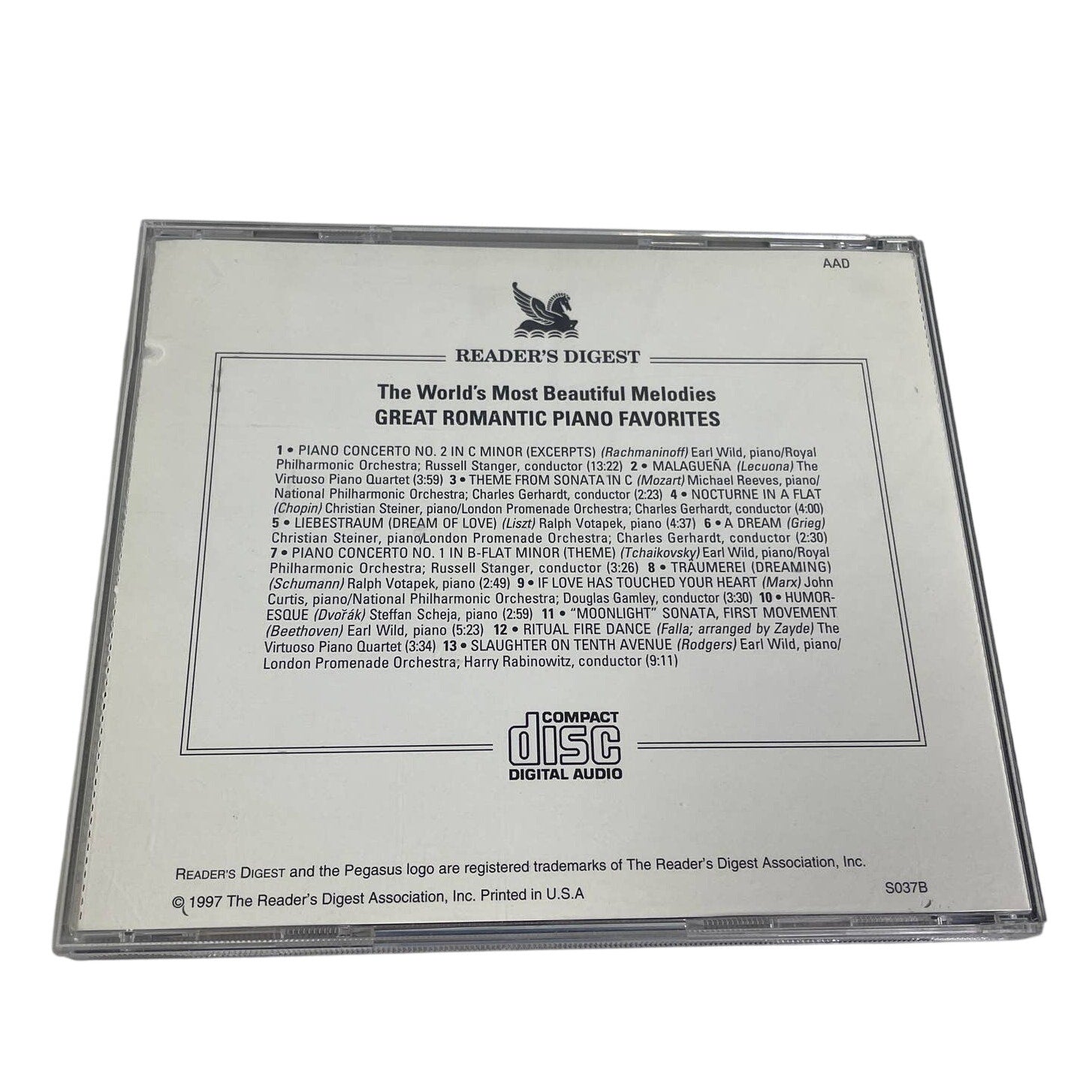 Vintage 1997 Reader's Digest Great Romantic Piano Favorites Music Audio CD