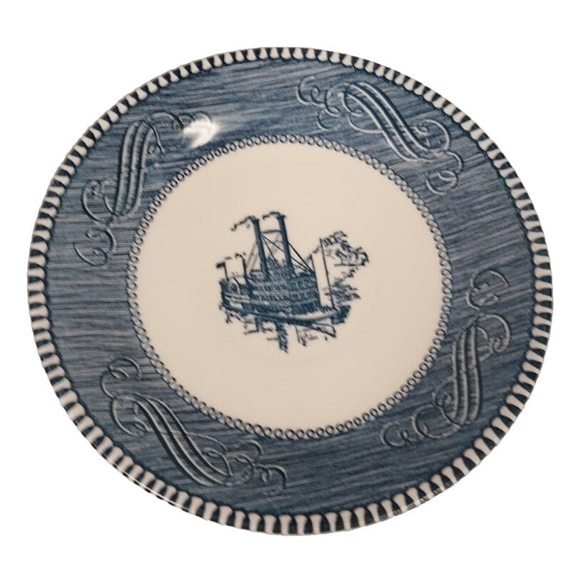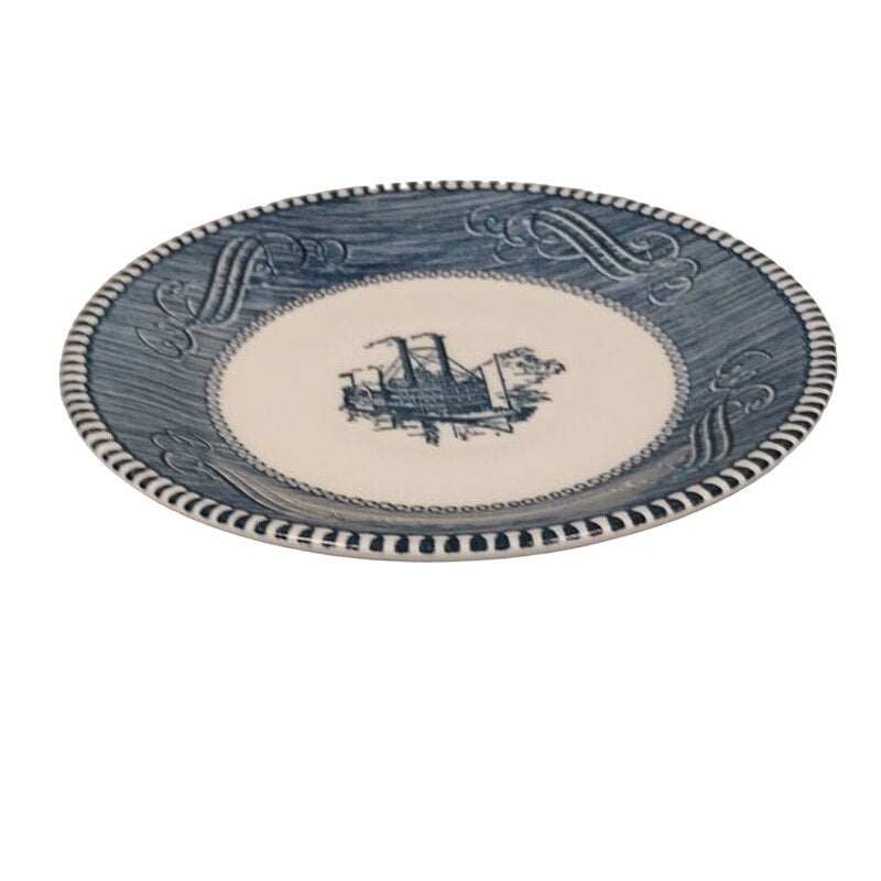 Vintage Ceramic Blue White Riverboat Small Round Dessert 6.25" China Plate