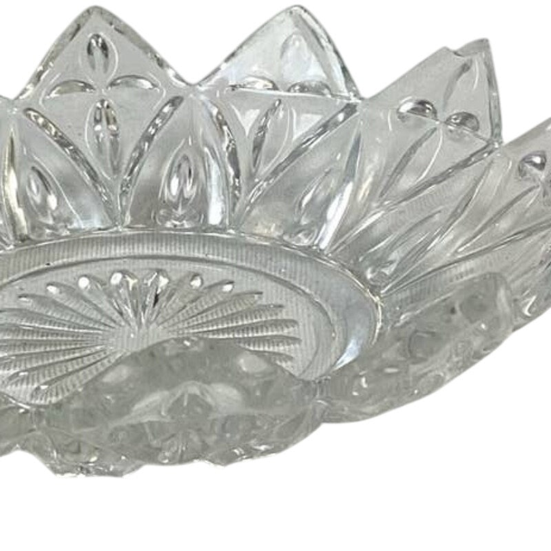 Vintage Cut Glass Bowl Flower Petal Candy Dish w chip Leaves Vines Mug