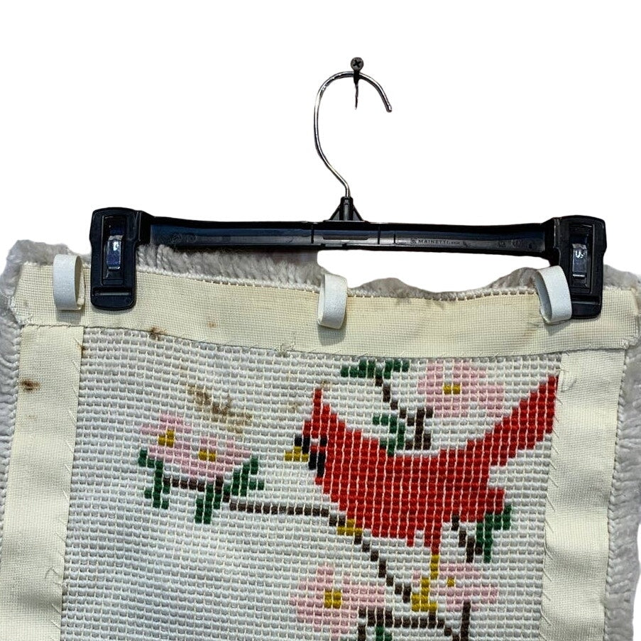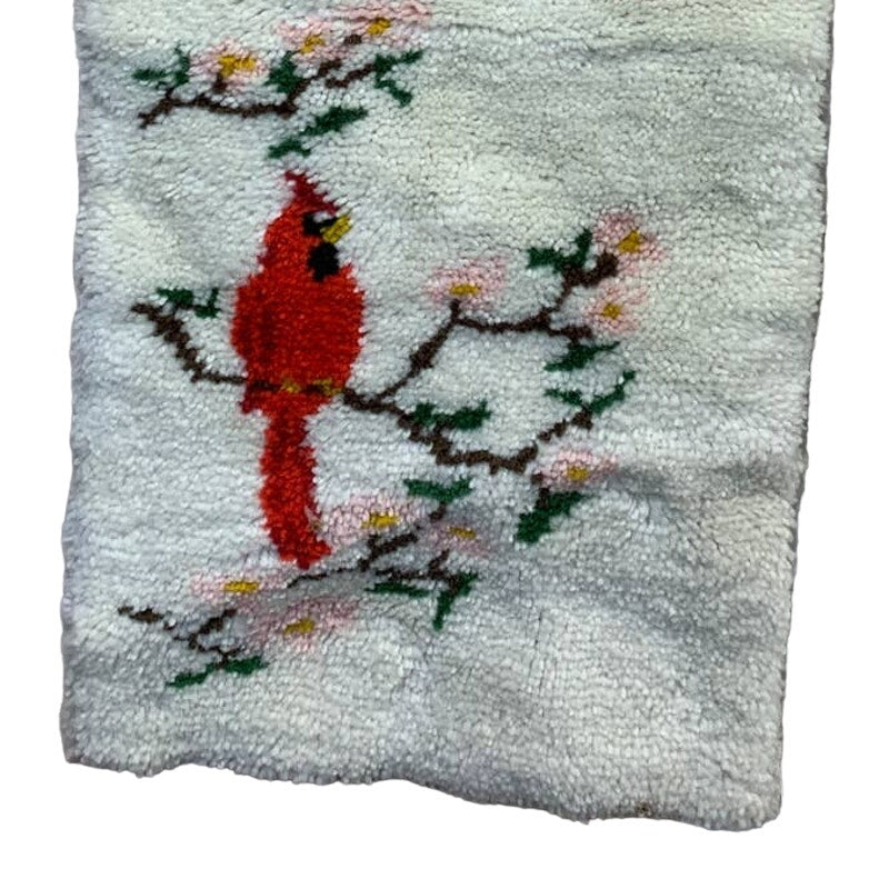 Vintage Handmade Acrylic Yarn Latch Hook Red Cardinal Bird Wall Hanging Rug Art