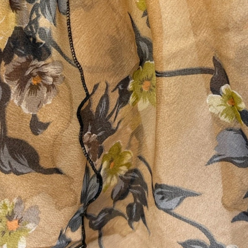 Vintage Long Rectangular Blue Yellow Floral on Brown Acetate Fashion Scarf