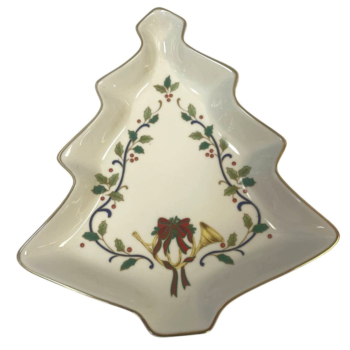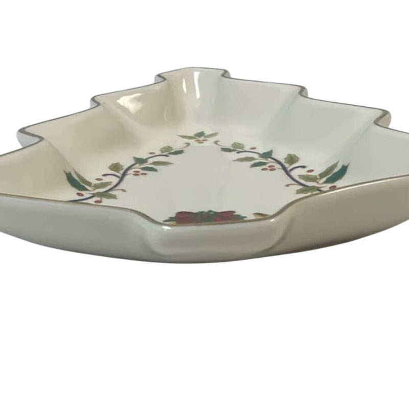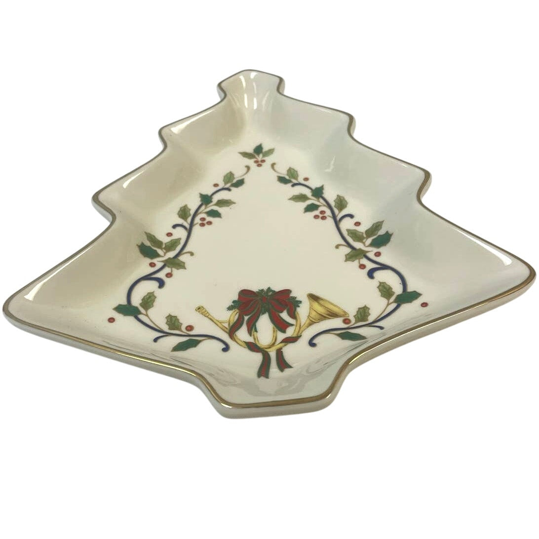 Vintage Mikasa Fine Porcelain Holiday Elegance Gold Trimmed Christmas Tree Dish