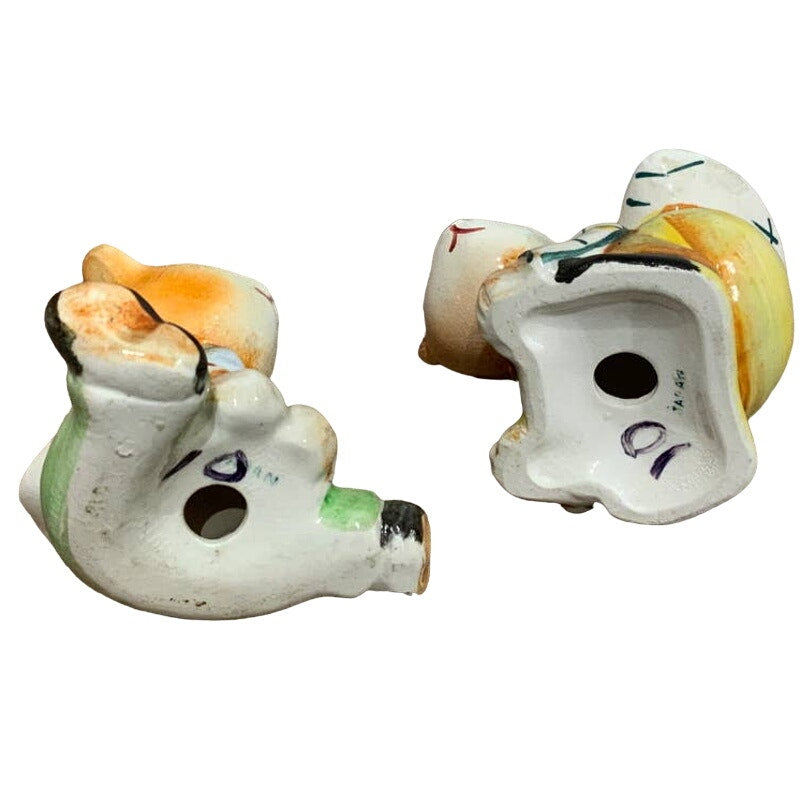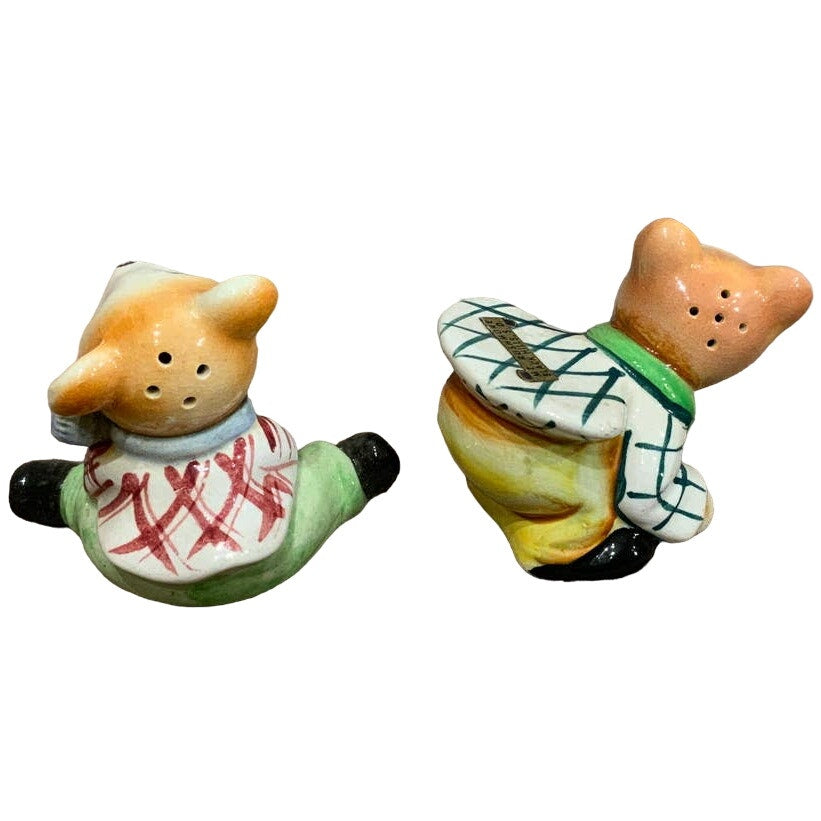 These adorable salt and pepper shakers are in great condition. Made of ceramic with no chips or cracks, approx 3" tall by 3" wide, stamped "Japan" on the bottom, so cute!