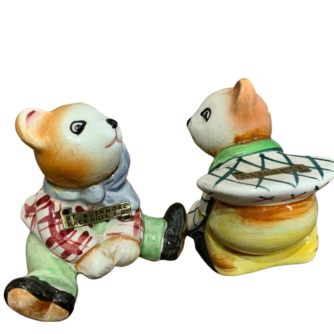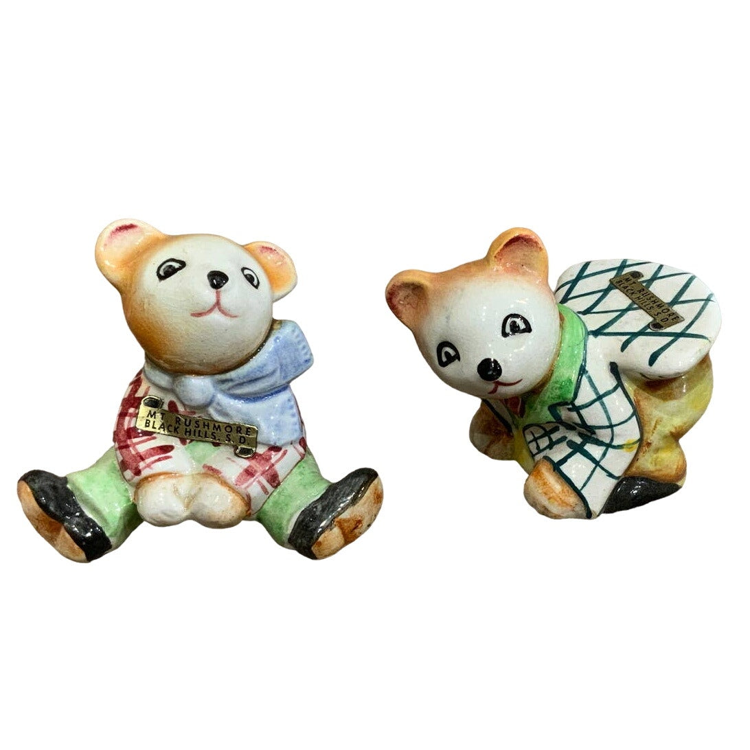 Vintage Mt Rushmore Black Hills SD Porcelain Leapfrog Bears Salt Pepper Shakers