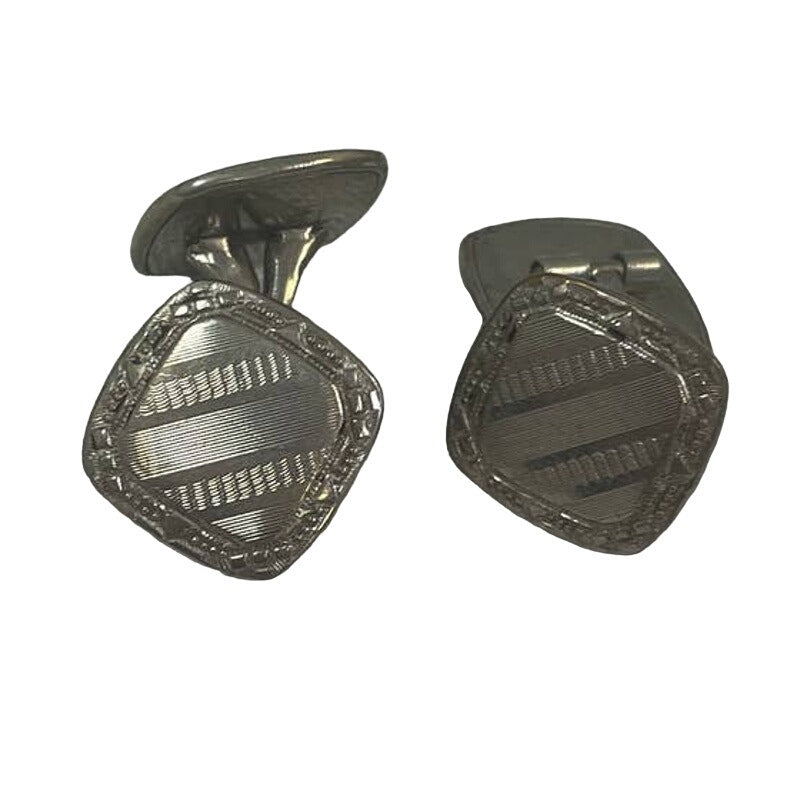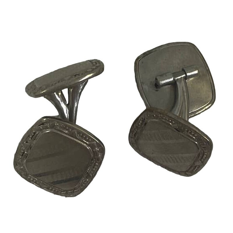 Vintage Pair of Silver Toned Small Square Textured Mens Formal Shirt Cufflinks