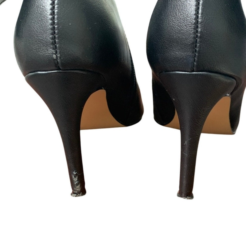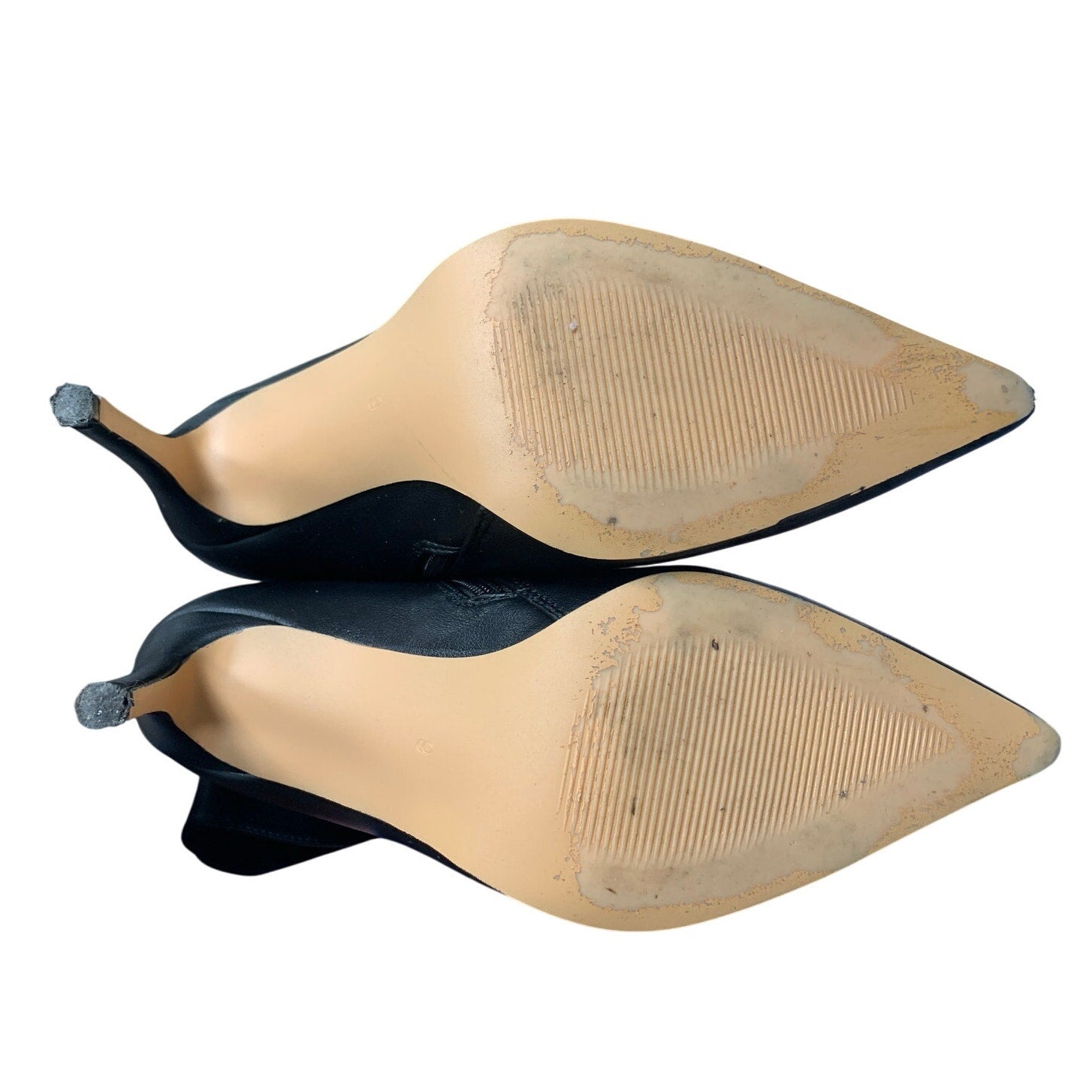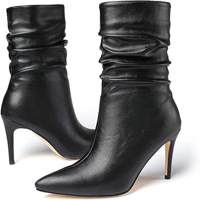 Vivianly Womens 9 Black Faux Leather Pointed Toe 3.5" Heel Slouch Ankle Boots