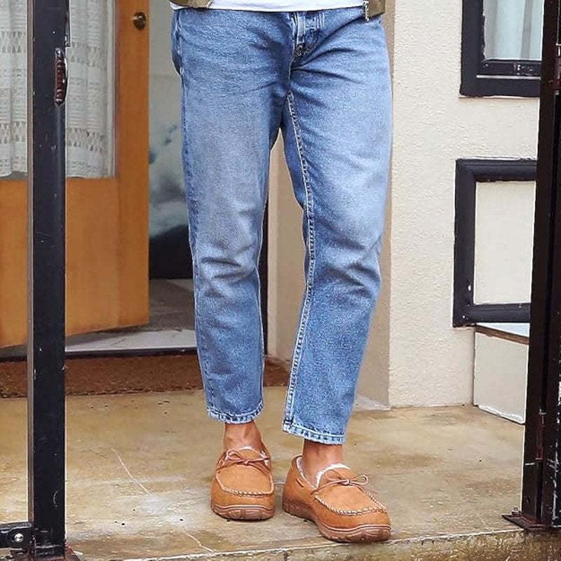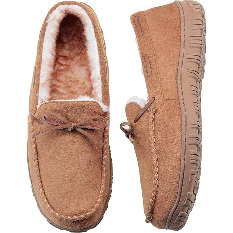 Vlly Mens Size 9 Tan Orange Faux Suede Micrsuede Slip On Moccasin Slipper Shoes