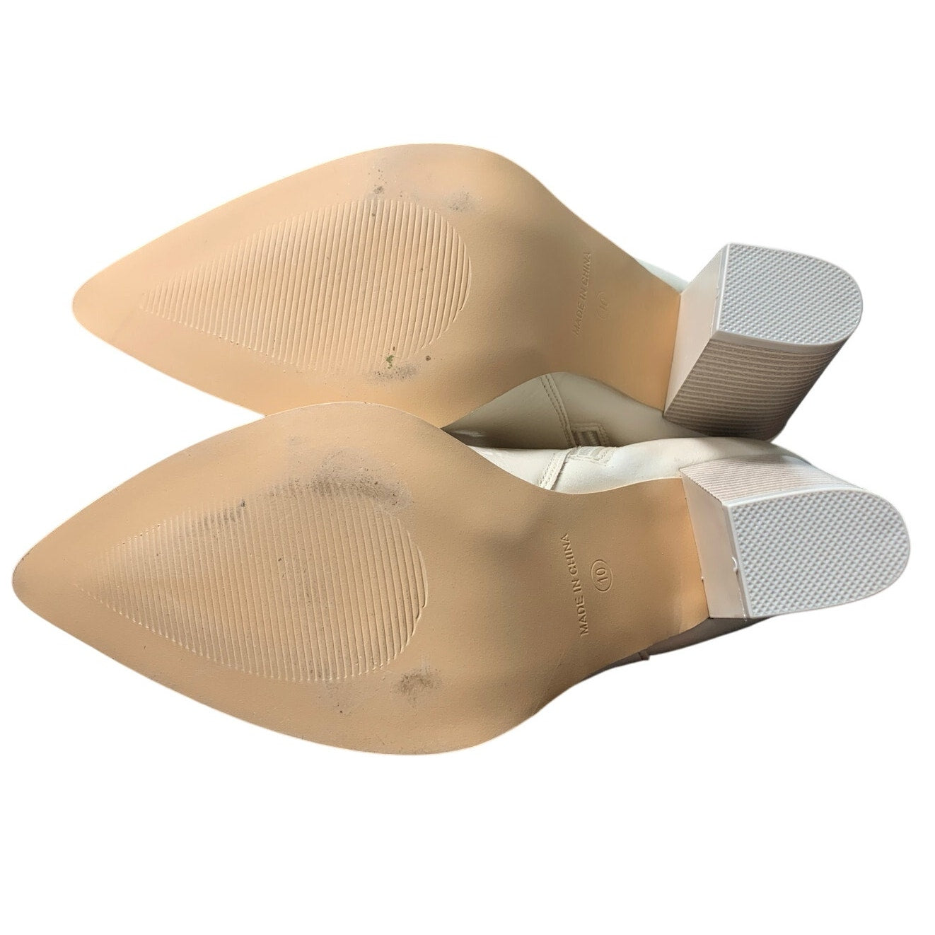 These new shoes do not come with their original box. shoe is manmade materials, They are a store return so they may have been worn/tried on (see photo of bottoms). There are no other scuffs or marks except the small mark by the zipper as shown, Just awesome! We are a very small business, so please do not purchase these and return them after wearing!