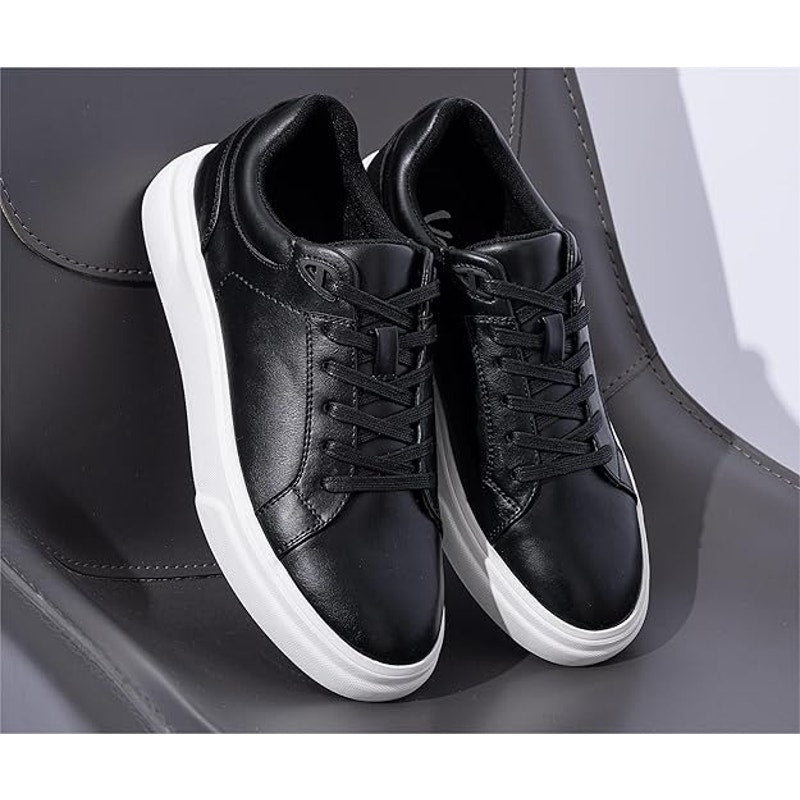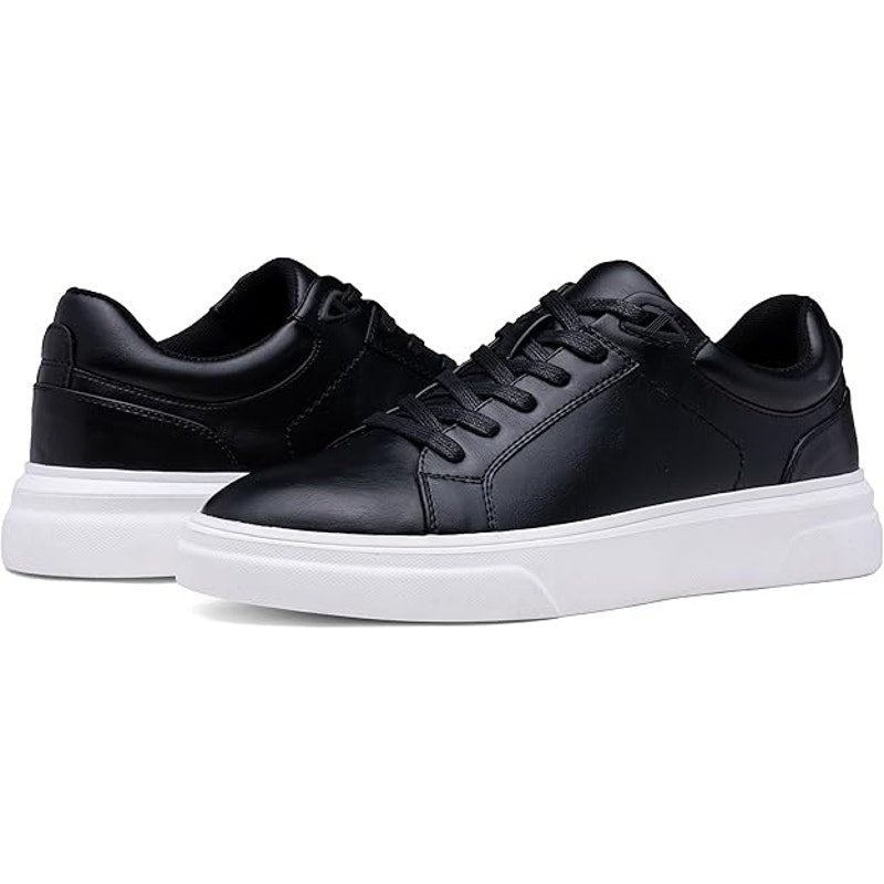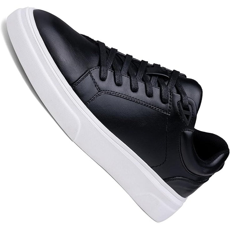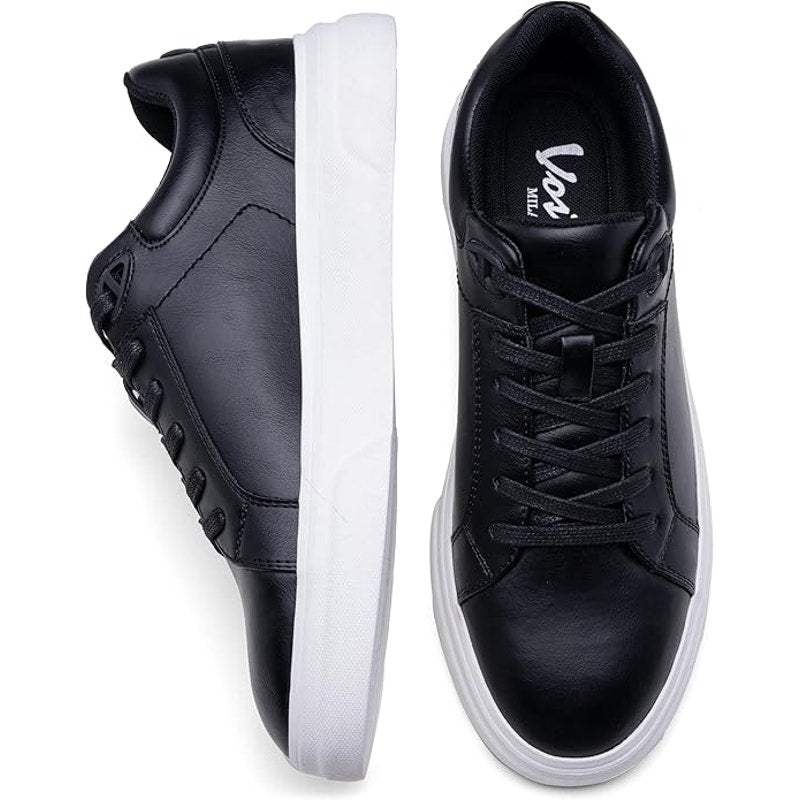 Vostey Mens Size 9 Black Faux Leather Lace Up Casual Fashion Sneakers Shoes