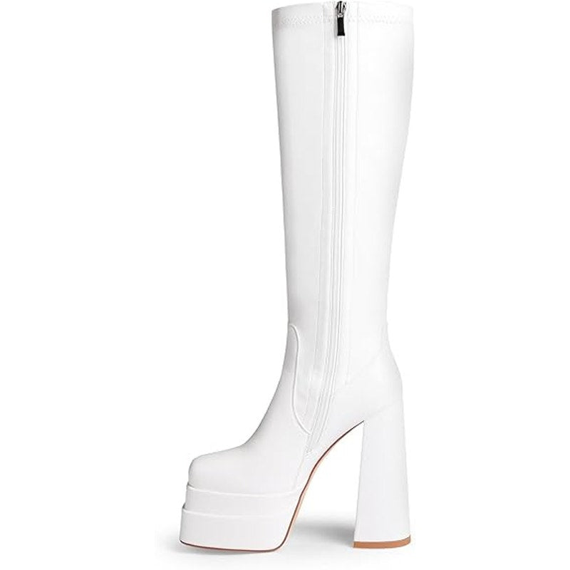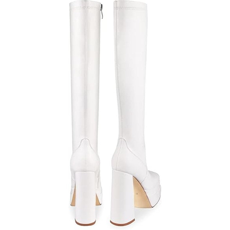 Wetkiss Womens Size 6 White Faux Leather 5.5" Platform Heel Knee High GoGo Boots