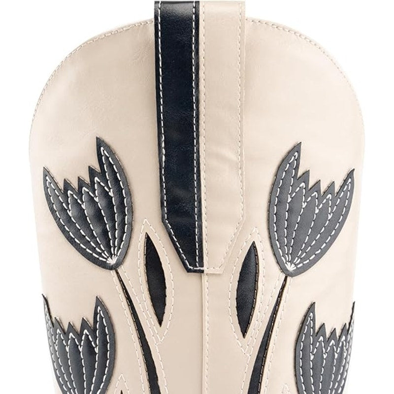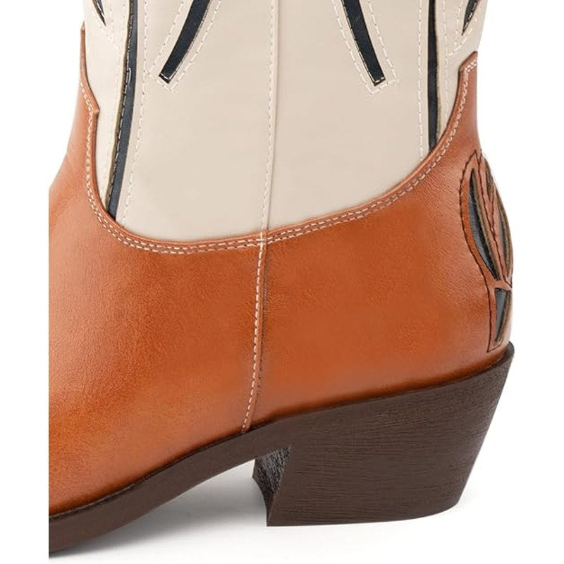 Wiralomi Womens Size 8.5 Beige Black Brown Faux Leather Floral Cowboy Boot Shoes