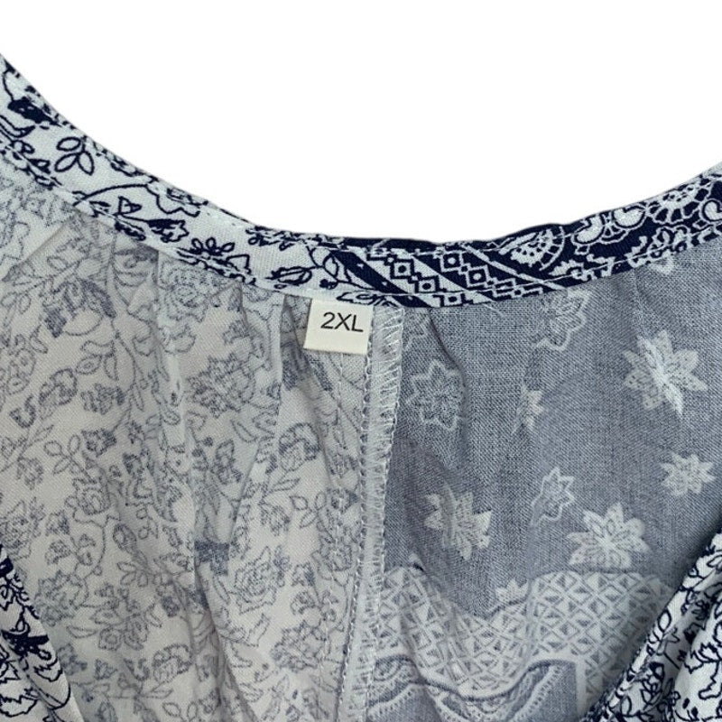 Womens 2XL Navy 100% Cotton Bandana Floral Sleeveless Thin Strap Jumpsuit