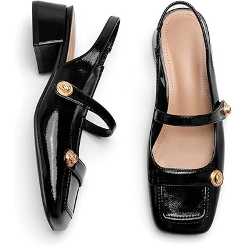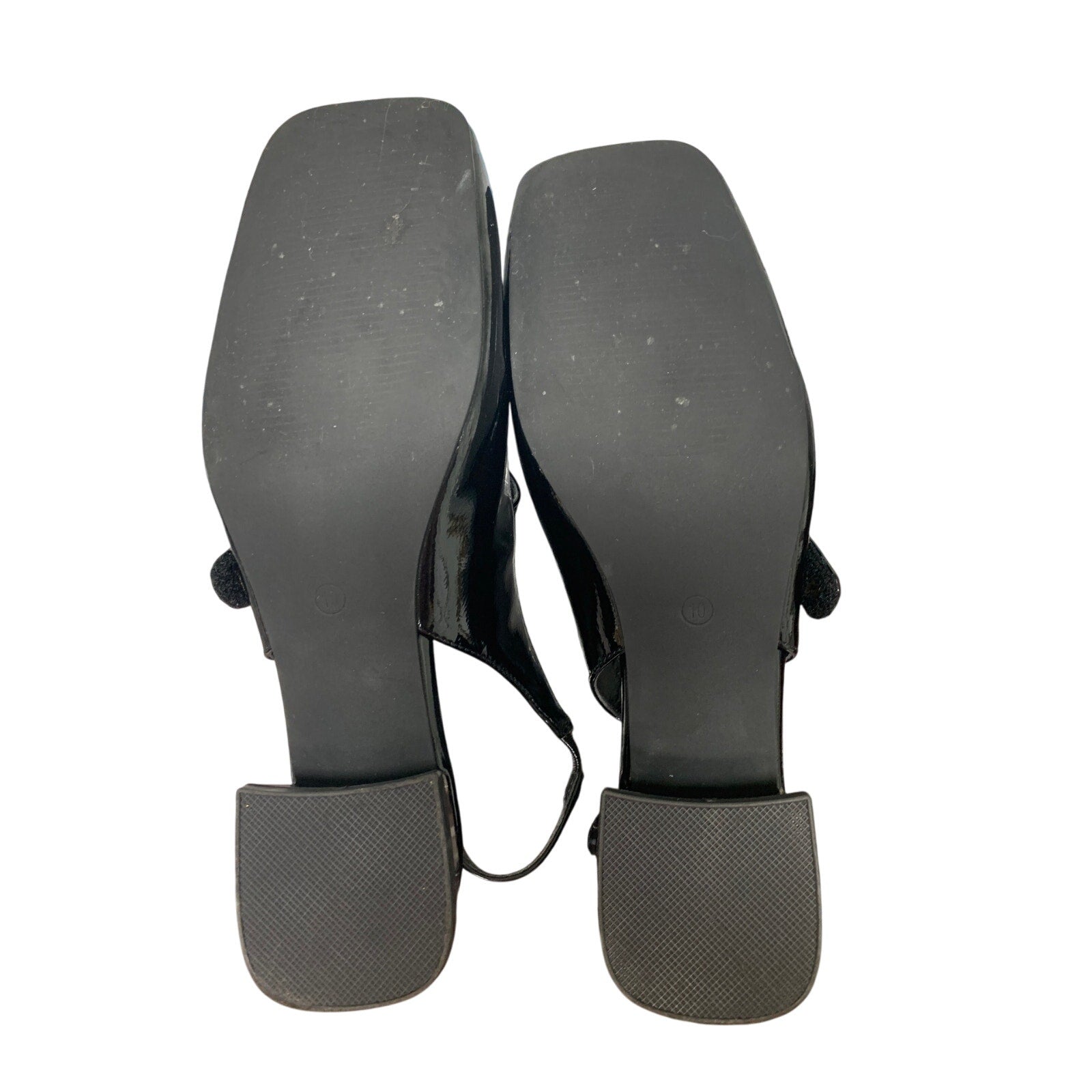Womens Size 10 Black Faux Leather Slingback Mary Jane 1.75" Block Heel Shoes