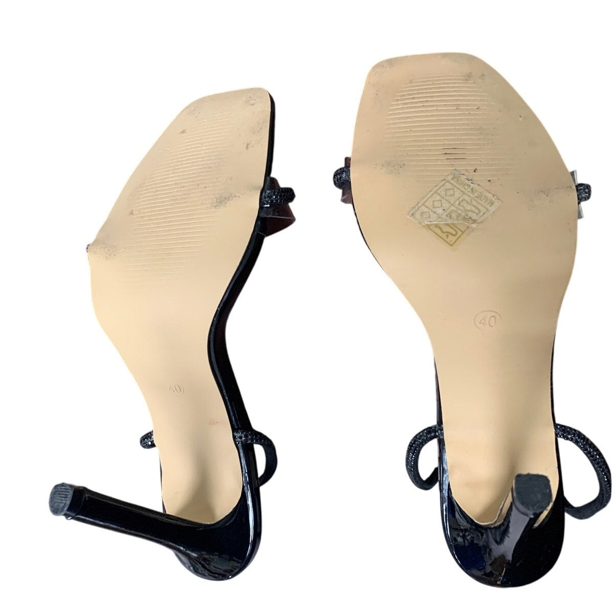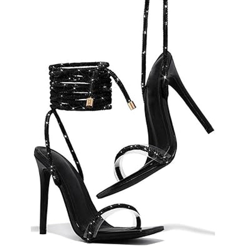 Womens Size 9.5 Black Rhinestone Ankle Wrap 5" Heel Open Toe Sandal Shoes