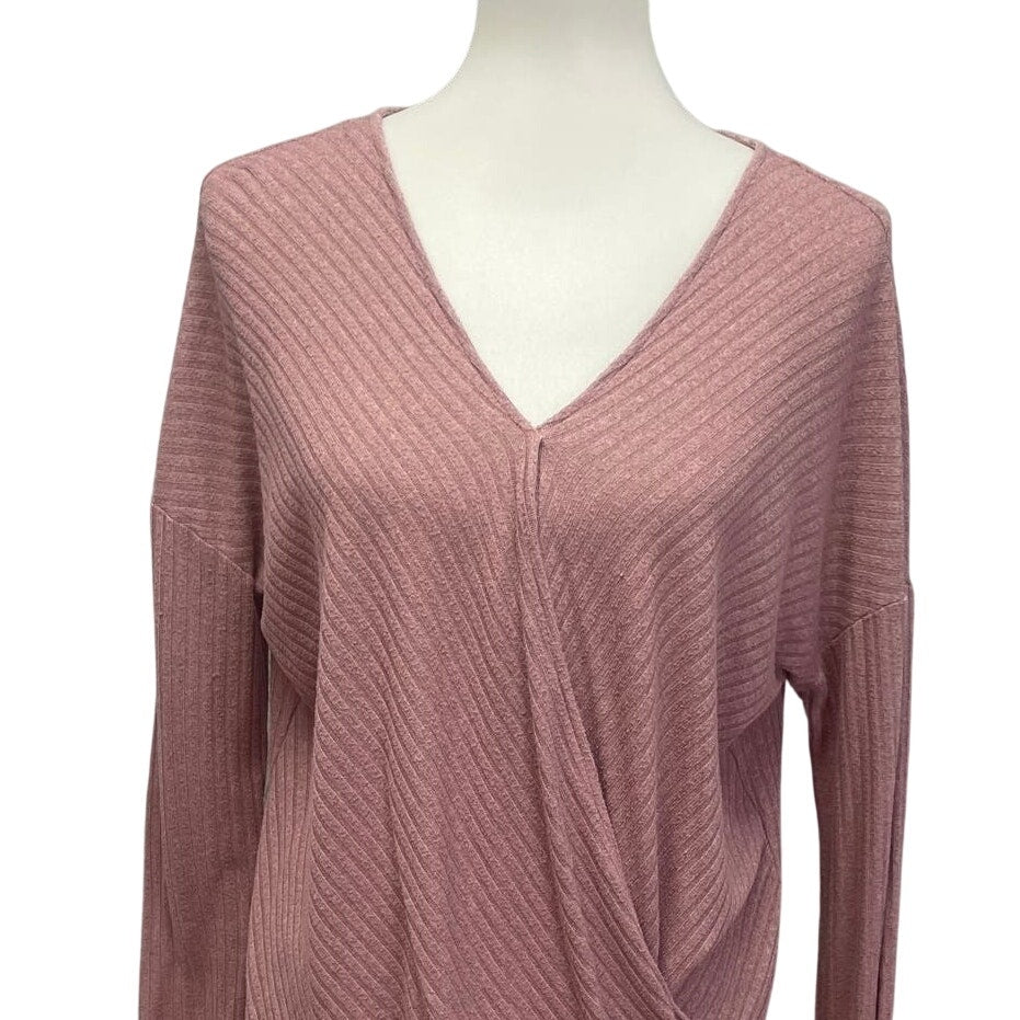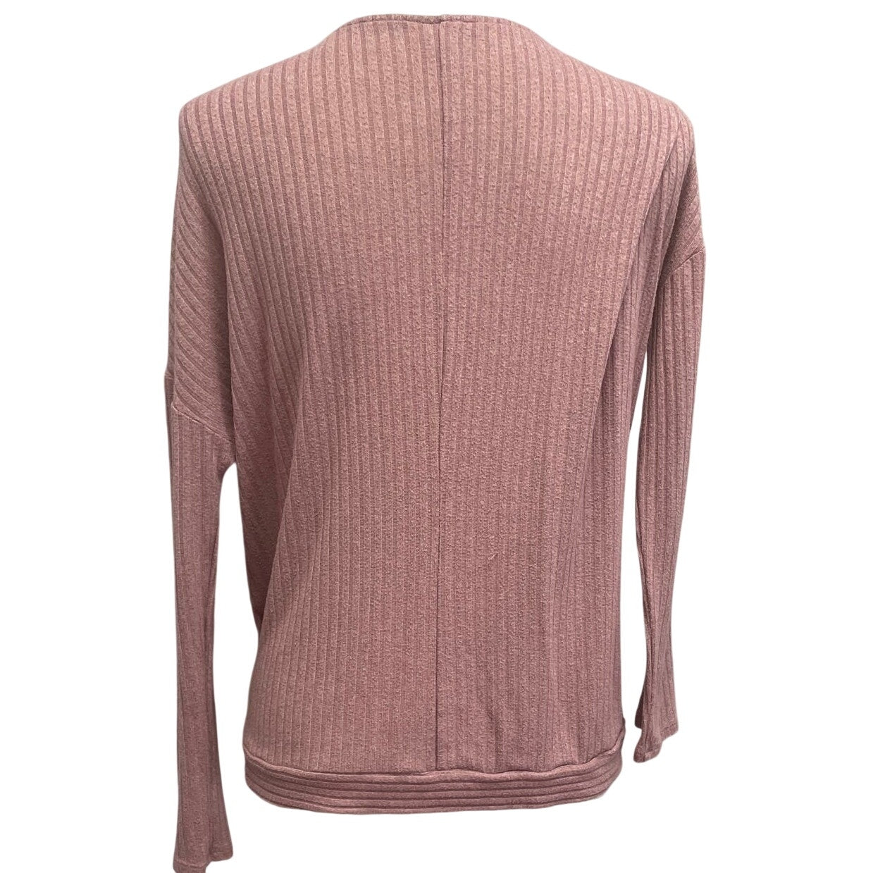 Womens Size Large Pink Lightweight Ribbed Rayon PolyBlend Long Sleeve Sweater