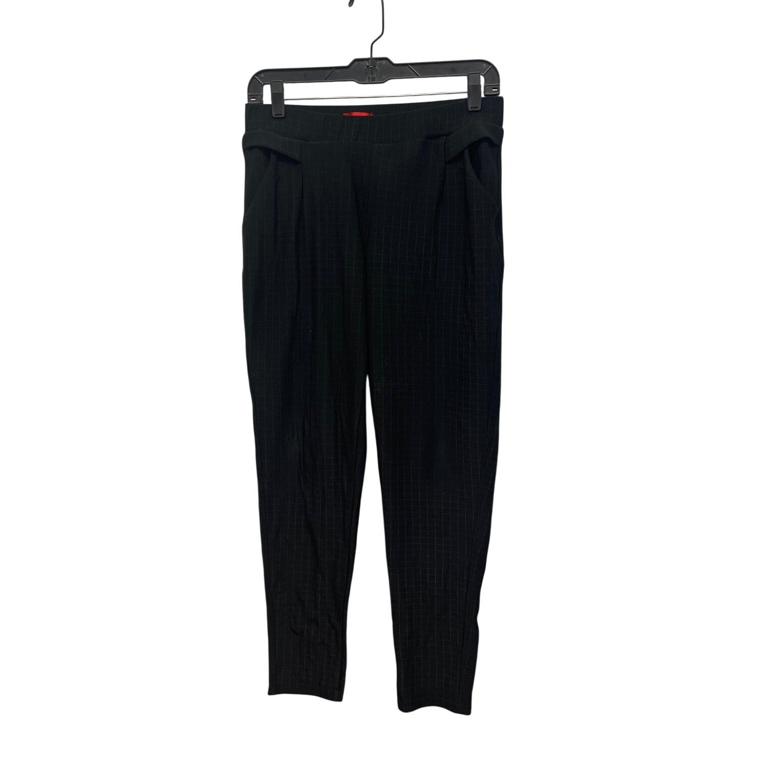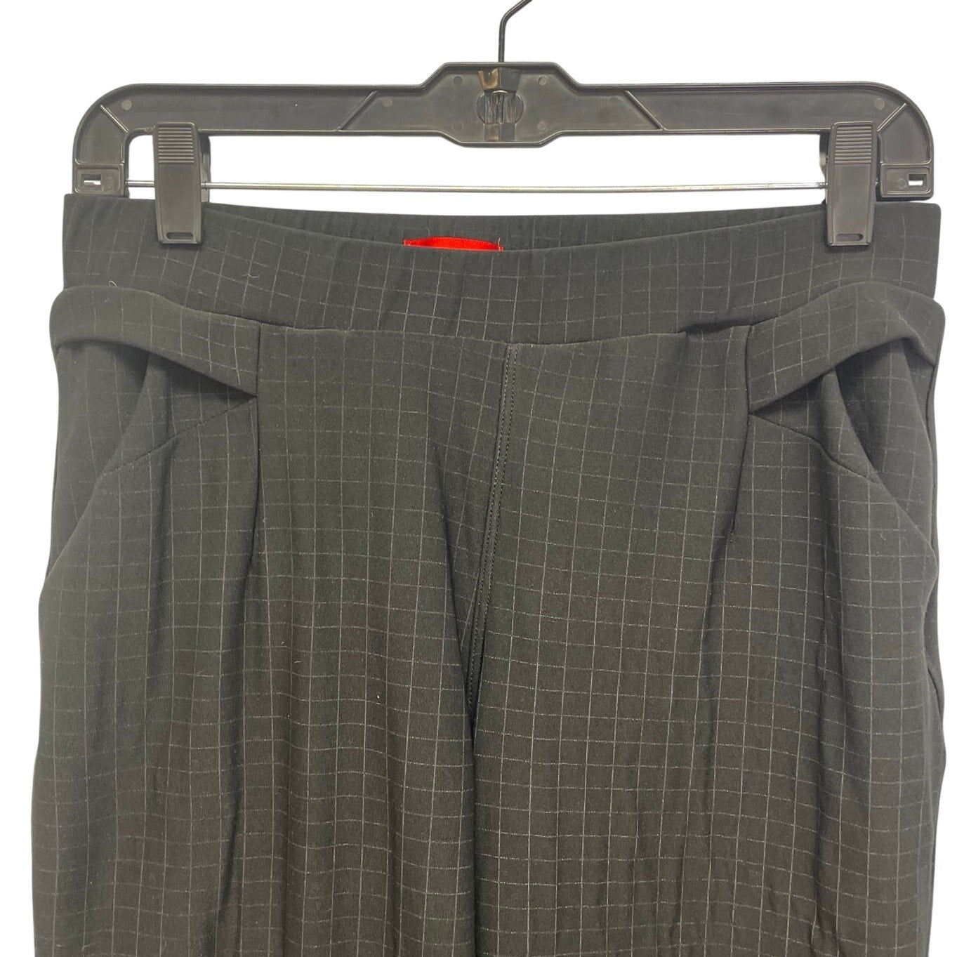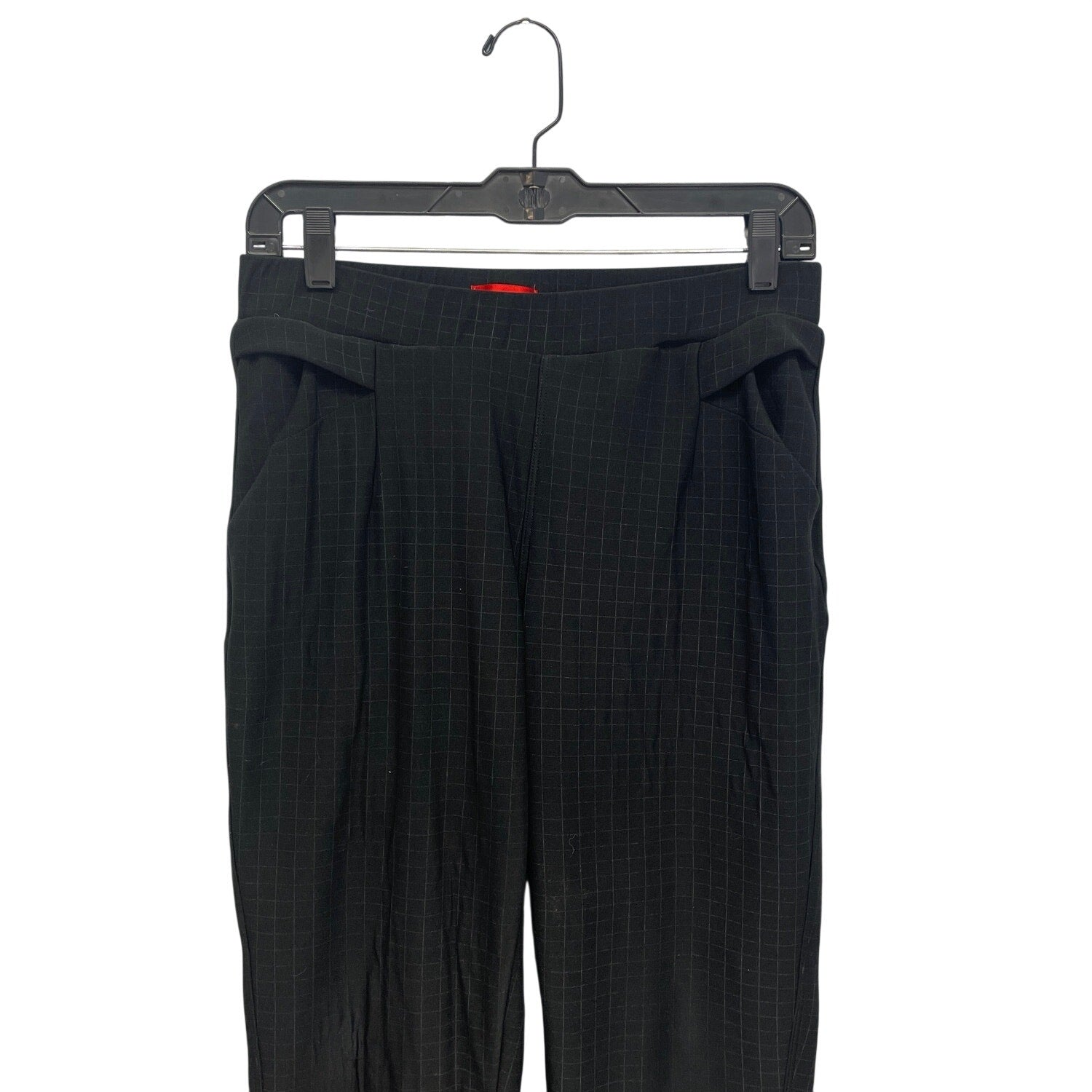 Womens Size Medium Elastic Waist Pull On Black White Square Grid Plaid Pants