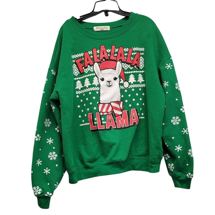 Wound Up Womens XXL Falalala Llama Christmas Snowflake Long Sleeve Sweatshirt