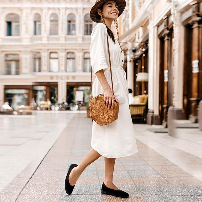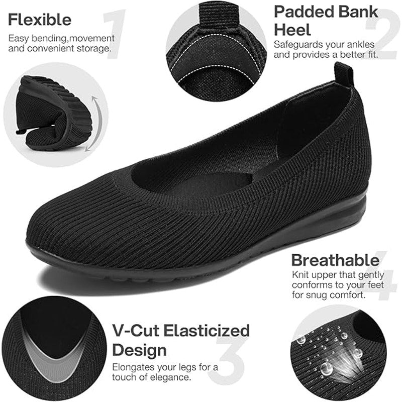 Zurin Womens 8 Black Breathable Fabric Slip On Closed Toe Flat Comfort Shoes