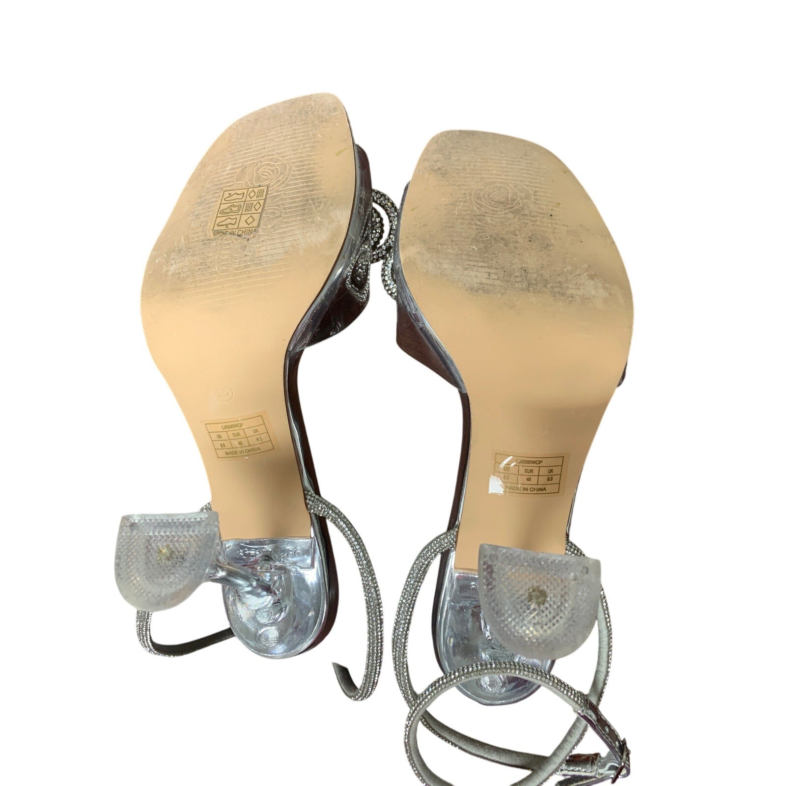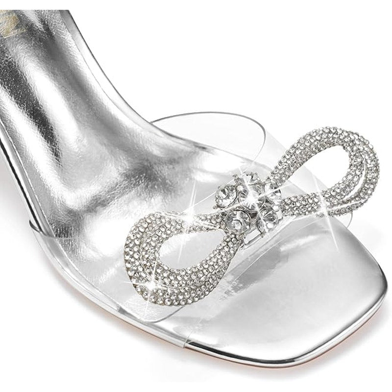 Zurin Womens Size 8.5 Silver Clear Strap Bow Open Toe 4" Heel Ankle Strap Shoes